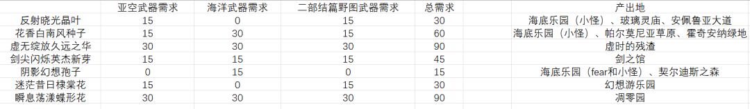 3.0后篇 武器再强化所需的相位稀有素材一览
