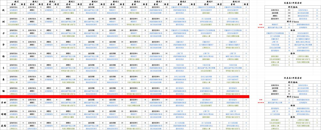 先放总结:# 1.月神武再强化就不在列表了,因为只需要副本特定素材 2.凋零园的相位和野图小boss在很长一段时间都是碰到必打(直接野营套组刷的您就当我啥也没说) 3.虚时的残渣相位在很长一段时间都是碰到必打(直接野营套组刷的您就当我啥也没说) 4.虚时之湖野图小boss可以利用野图机制速刷,无视6小时刷新 5.深海遗留物一轮可以有五个(遗迹 巴克哈尔姆*1+迪利克尔旧址*1+瓦砾暗礁 灾祸监狱*