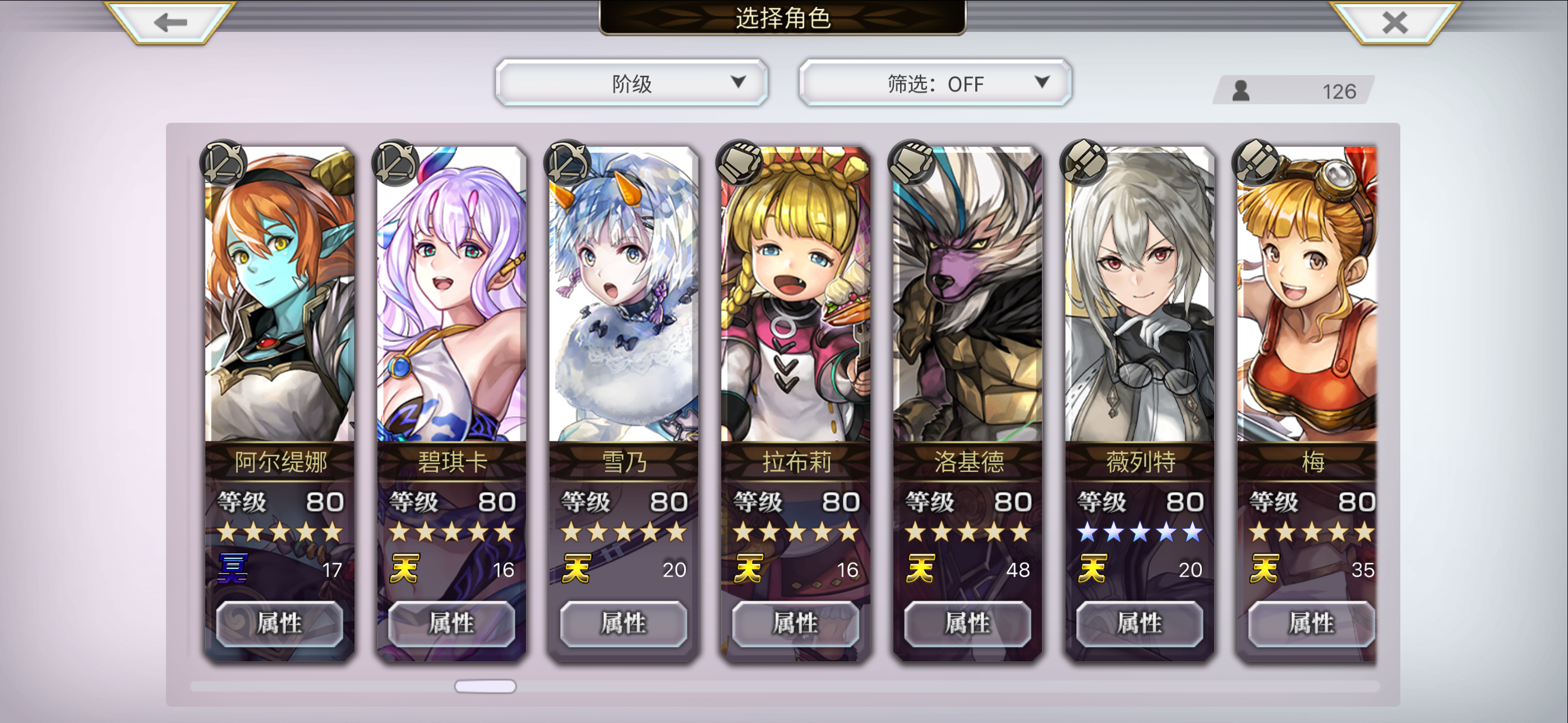 第一支队伍,日常清道中和点数副本通用 一般as燕一个普攻就能秒,偶尔遇到有耐性的,as皮鞭先制先挂个破碎,或者ac希儿开个打阵第二支队伍,水队,茉莉没抽出来,歪了个ac风奶,暂时用着吧,多了个开场极水阵。(魔剑和魔兽妹是p化架子,hp最大斧x2,水斧,法外之人p,王城p)第三支队伍,暗队,暂时够用,听说以后会有个强力辅助?到时候把眼睛兽换下第四张截图,老头和军师用来逃课,仙华as狼缺觉醒,