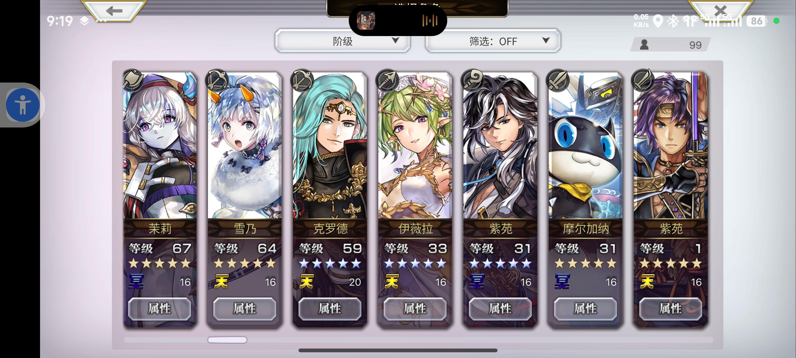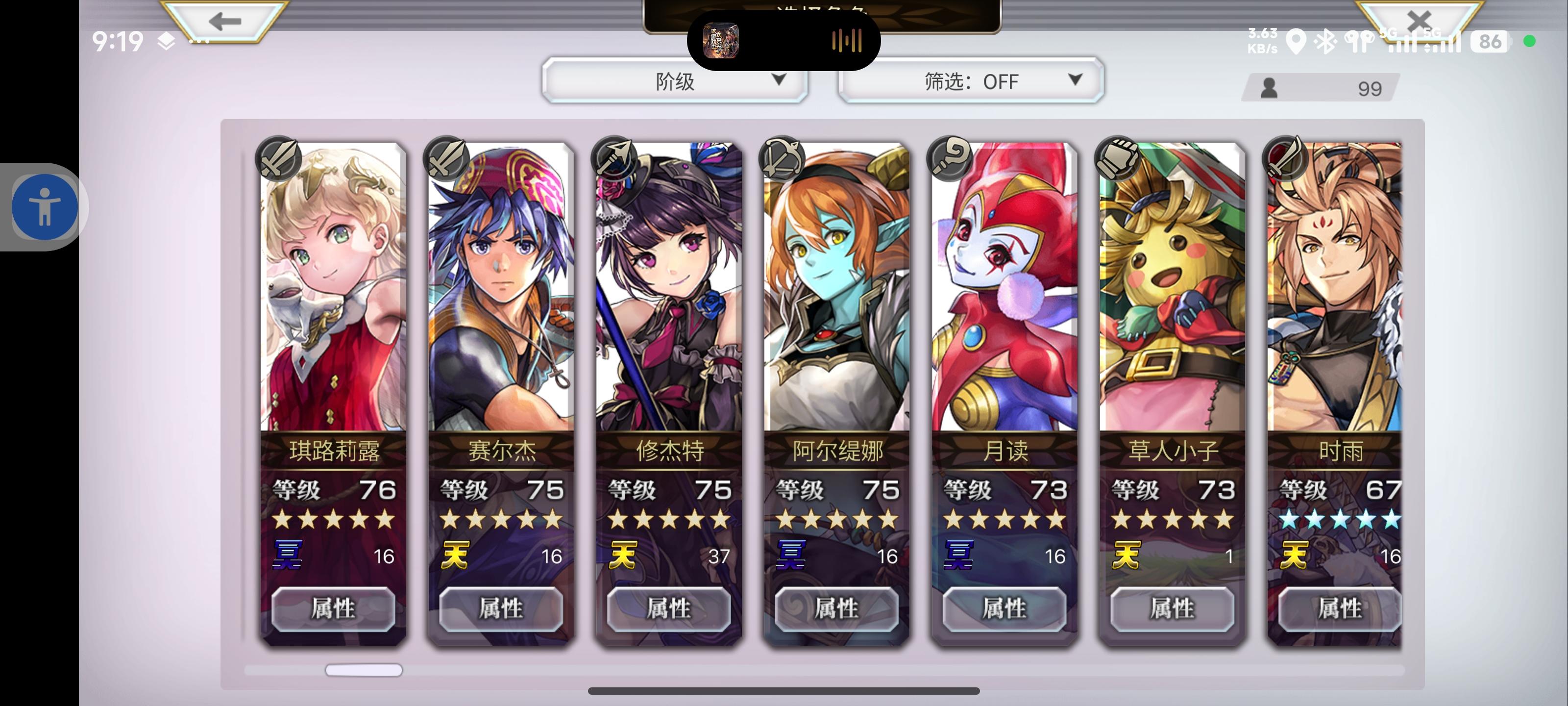 目前配队 洛基德(主输出) 安娜贝尔 玛丽埃尔 仙华 草人 多娃es 琪路莉露as 奈歧 克罗德 伊斯卡 修杰特 米悠 碧琪卡ns 玛丽埃尔 麦提 由奈 拉蒂卡 安娜贝尔(觉醒) 紫苑 伊斯卡 月华 奈歧 桔梗 克罗德 洛基德(觉醒) 尤恩 梅丽娜 琪路莉露 维克多 雪乃 猫可可 仙华 莉娜里亚 巴雷斯(觉醒) 妮娜 琪德4.5星 艾妮 伊津奈 梅丽莎 红票刷艾妮五星书,绿票刷现东下