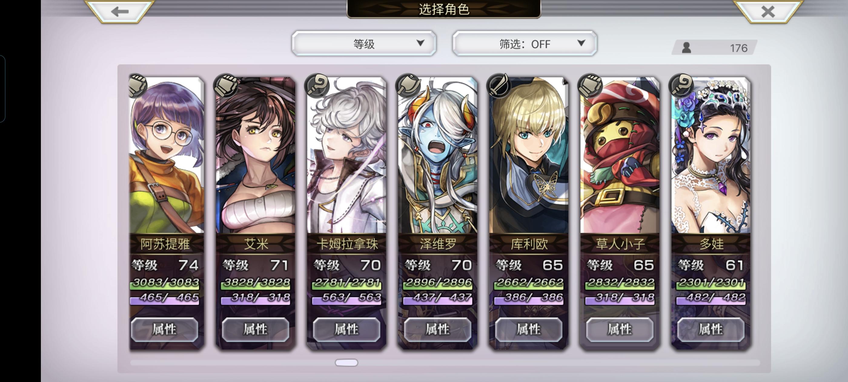 刚玩半个多月,角色如图,主线打到2部结束,8多章,其他外传,协奏什么的都没打。都是狼姐一路秒过来的现在打算停下来,熟悉熟悉游戏机制,养成下角色,有几个问题1 我这怎么配对,角色太少了,钻石都攒着没抽,狼姐是猫铃铛氪出来的2 因为刚玩,一个角醒的都没有,明天可以凑三本星谱,优先给谁觉醒啊,图中角色优先级3 天冥道具优先给谁?开了月卡,天冥值先升到多少点性比价最高,还是一个直接升