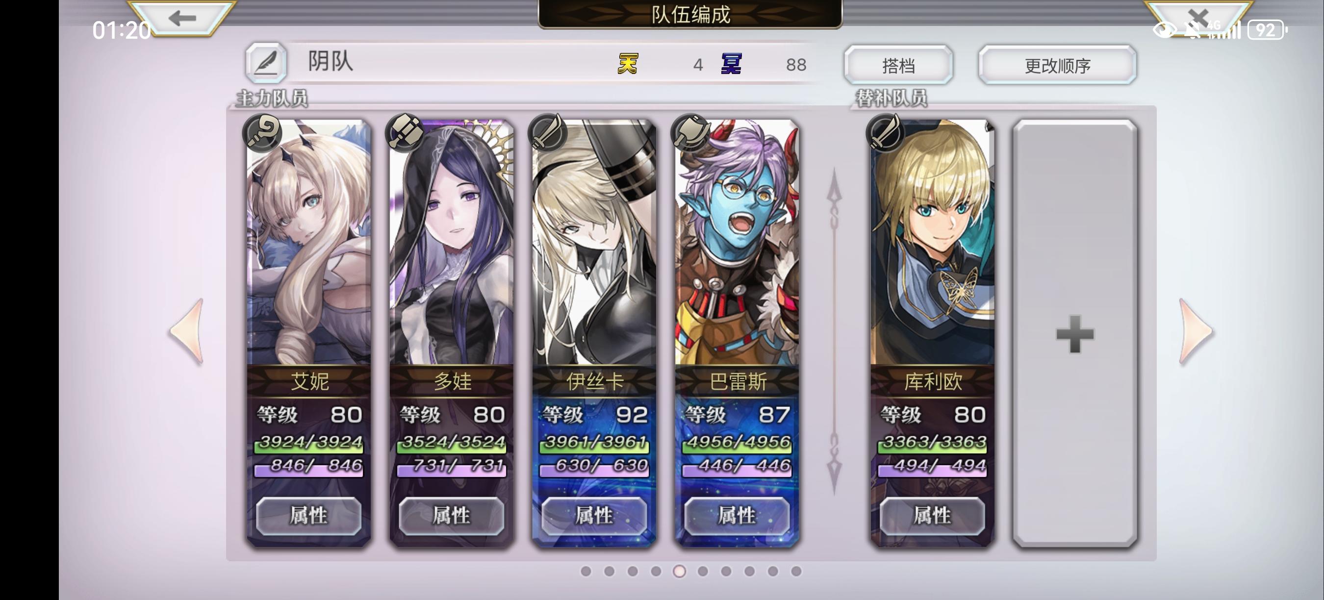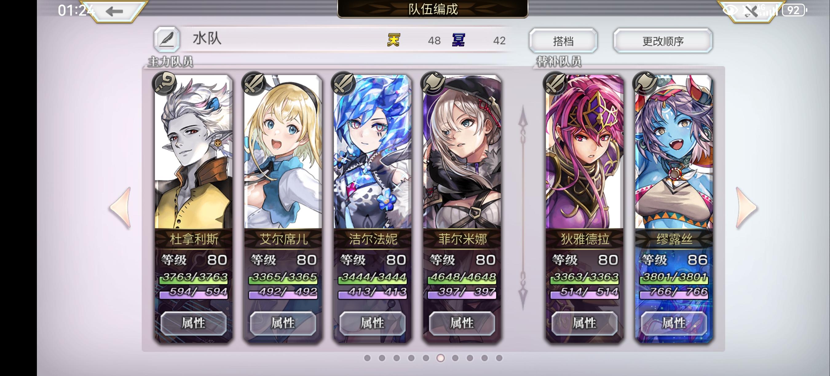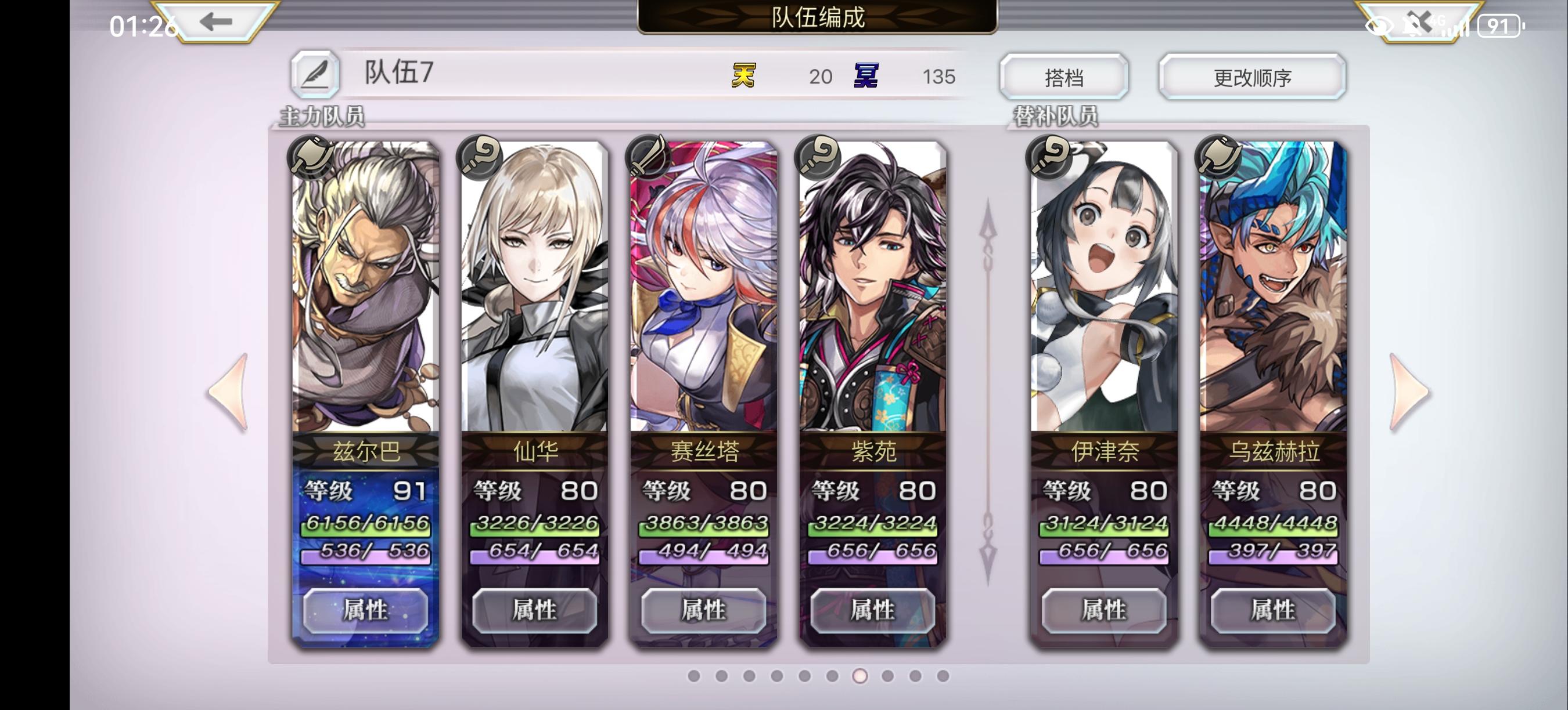 第一支队伍,日常清道中和点数副本通用 一般as燕一个普攻就能秒,偶尔遇到有耐性的,as皮鞭先制先挂个破碎,或者ac希儿开个打阵第二支队伍,水队,茉莉没抽出来,再了个ac风奶,暂时用着吧,多了个开场极水阵第三支队伍,暗队,暂时够用,听说以后会有个强力辅助?到时候把眼睛兽换下第四张截图,老头和军师用来逃课,仙华as狼缺觉醒,雷队缺as熊妹抽不出来我想问的是,现在主线刚过2.0结,迟迟没开3.