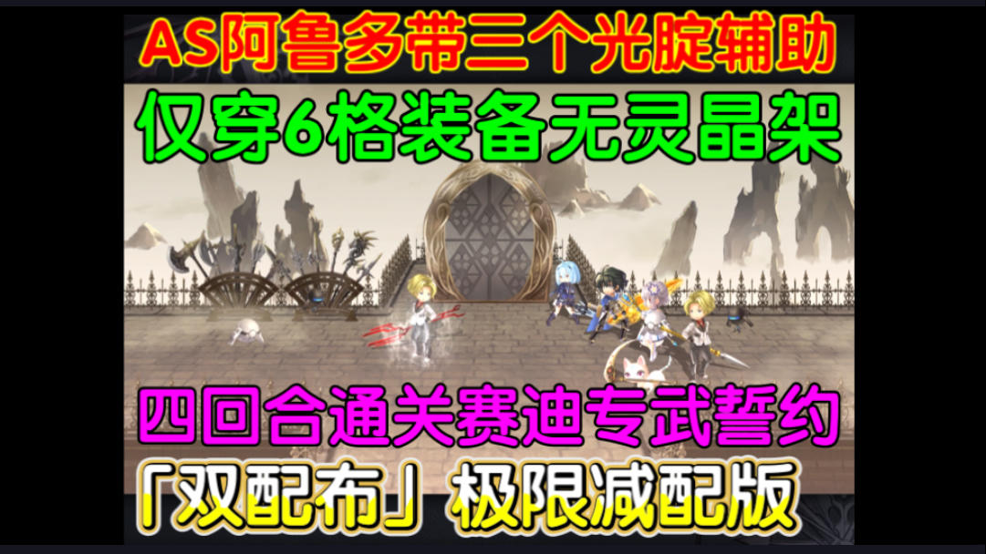 渣猫这周再次发力,给他三保一的阵容,他也能当绝对主C,255as赛斯塔穿6格装备拖三个光腚辅助做到的誓约通关,255as阿鲁多同样也做到了,只是多打了一回合,但是男主角毕竟获取和天冥值养成都是免费能做到的,阵容依旧和上期打莲莉几乎一样,渣猫负责输出,莉娜里亚,as菲奈,赛迪负责辅助。我演示的以表演为主,想抄作业的猫友,可以给渣猫带上主角证,三个辅助穿上装备, 给渣猫挂挂灵晶架,补补速度和伤害