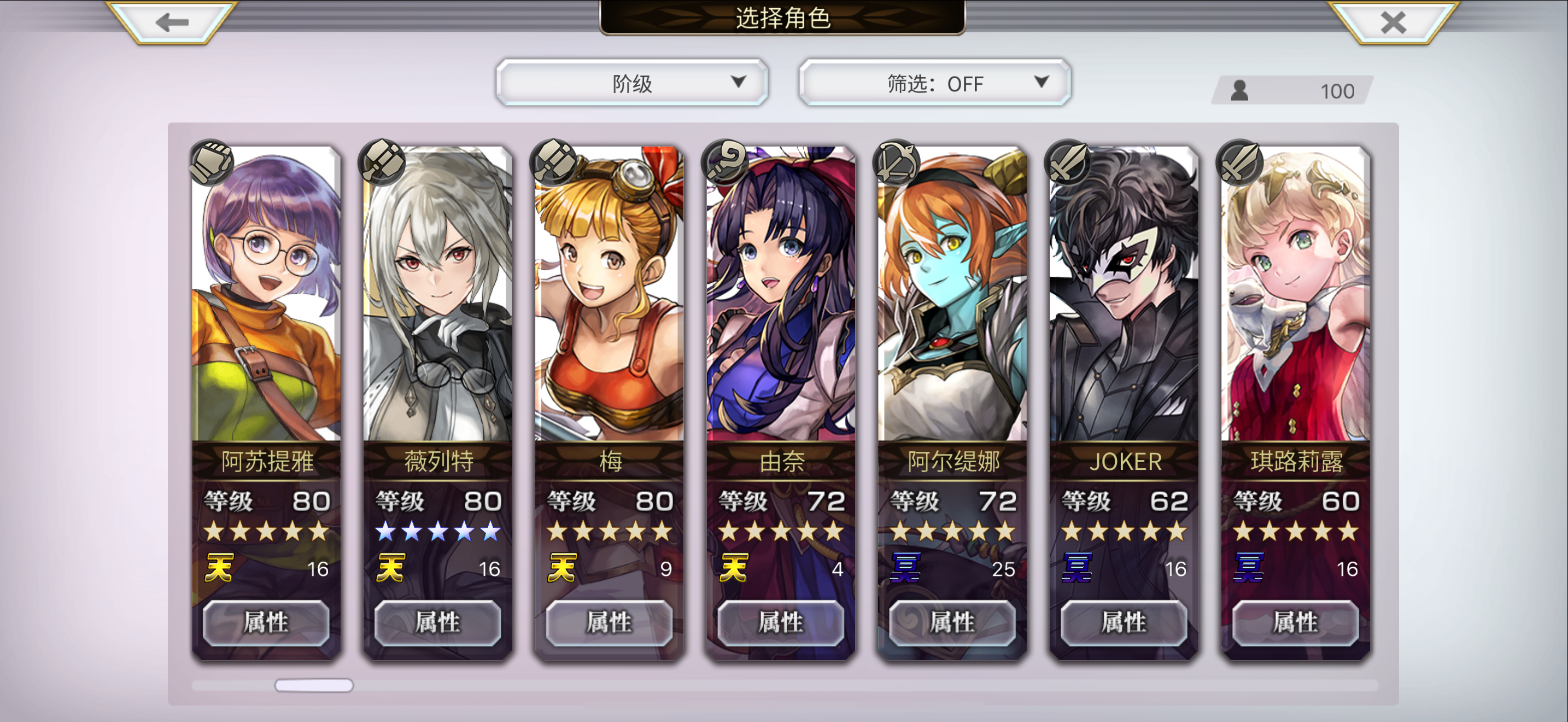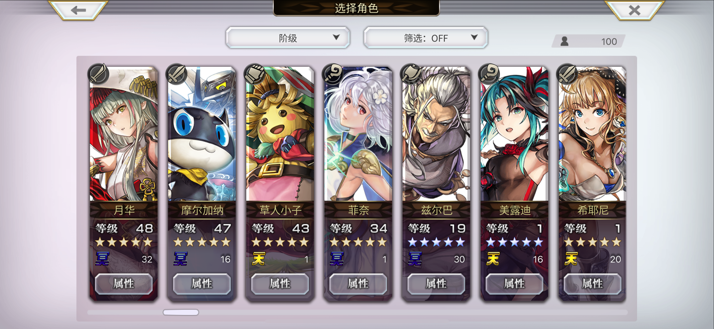 刚入坑半个月的萌新来问问猫铃铛自选和配队目前主线3.0前篇刚开了个头,外传和联动都还没怎么碰,今天更新的猫铃铛三档都买了自选先选了狼姐和时雨,第十章新手自选选了7616本体,进过两次白票本最终层拿了两本神圣恩宠改典,图里是现在有的4.5星和5星角色,求问配队和自选该怎么选或者需要先去拿什么配布角
