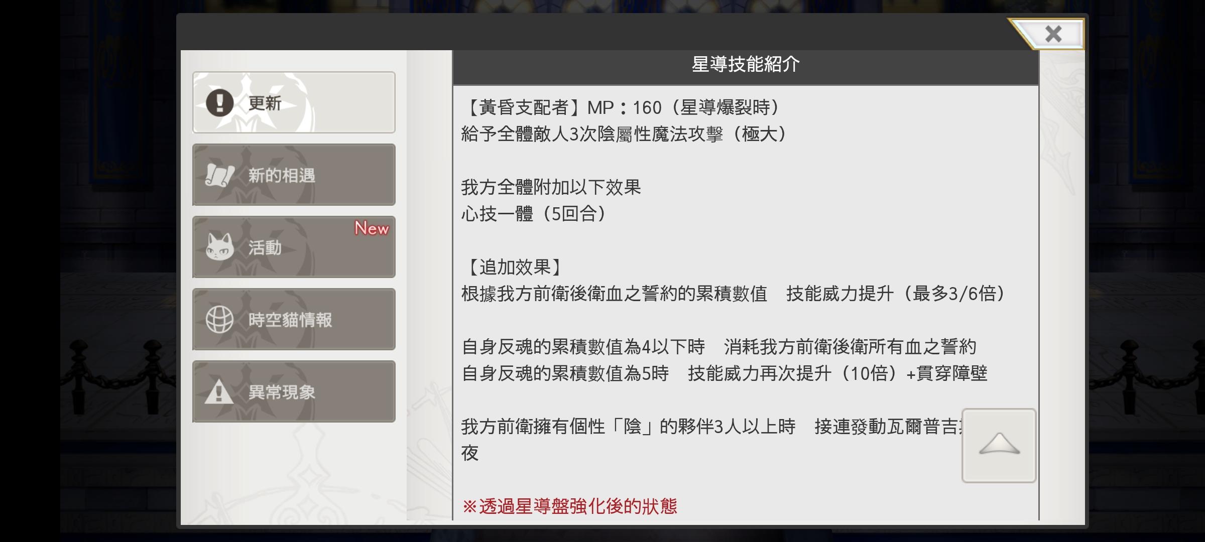 *如果写错欢迎补正,本文只写技能不写评价 -----------------------技能------------------------献魂的心脏(队友珠子)/赫灼的心脏(自身珠子):1)献魂的心脏(队友珠子):最大HP30%DOWN以前卫开始时 美丽特左/右栏的前卫伙伴累积「献魂的心脏」+附加疯狂之力(挺身)(效果至回合结束时)+消耗美丽特左/右栏以外的伙伴累积的献魂的心脏*