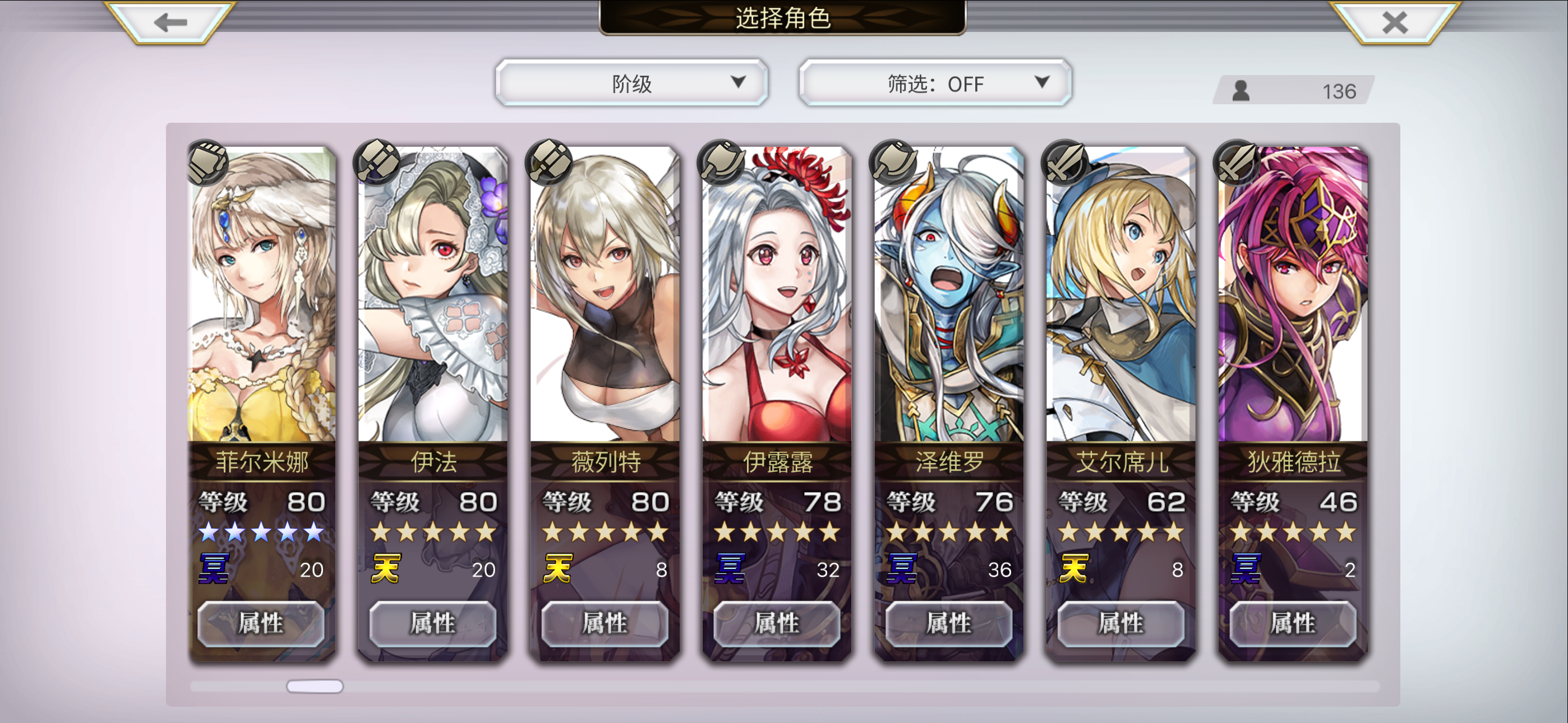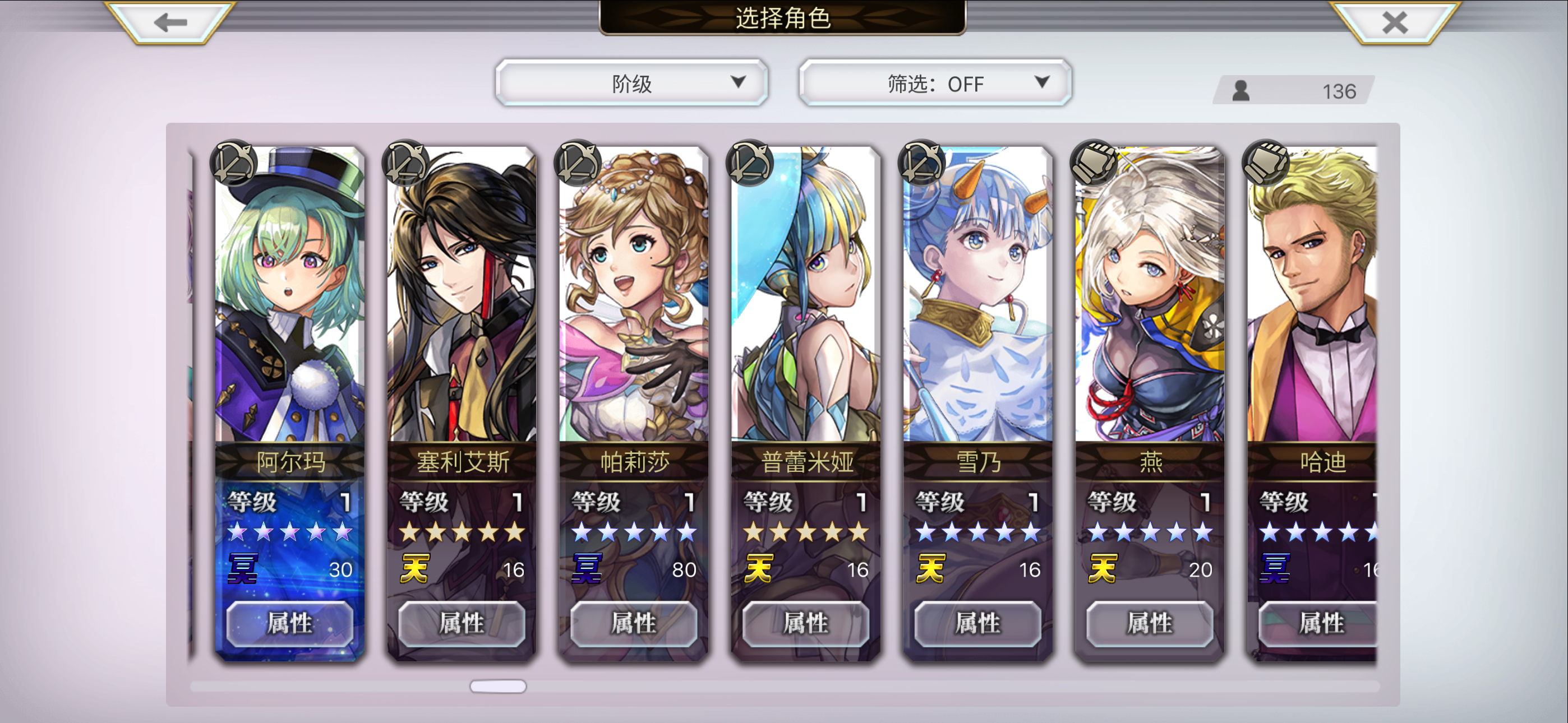 第一支队伍,日常清道中和点数副本通用 一般as燕一个普攻就能秒,偶尔遇到有耐性的,as皮鞭先制先挂个破碎,或者ac希儿开个打阵第二支队伍,水队,茉莉没抽出来,歪了个ac风奶,暂时用着吧,多了个开场极水阵。(魔剑和魔兽妹是p化架子,hp最大斧x2,水斧,法外之人p,王城p)第三支队伍,暗队,暂时够用,听说以后会有个强力辅助?到时候把眼睛兽换下第四张截图,老头和军师用来逃课,仙华as狼缺觉醒,
