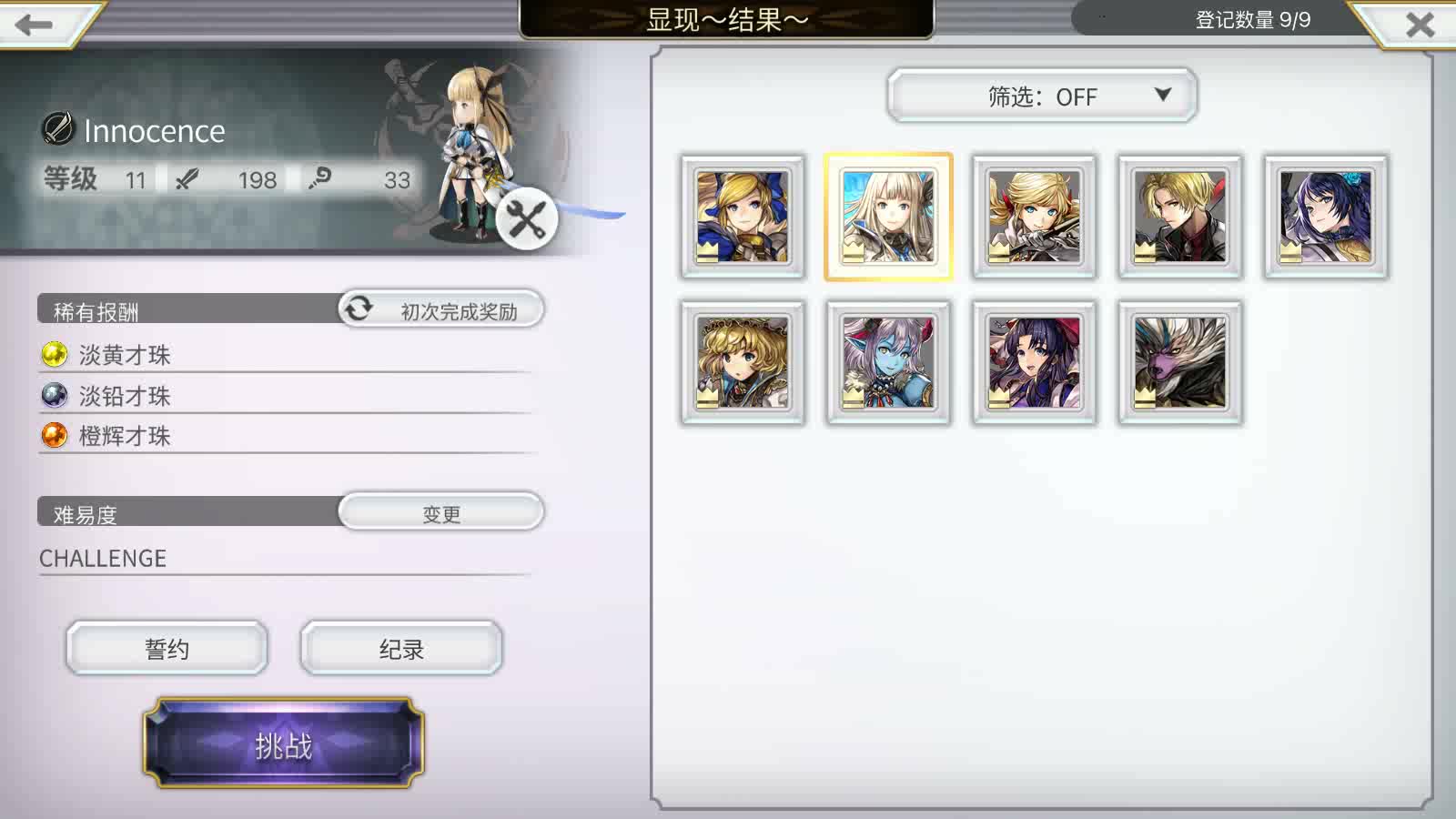 第一支队伍,日常清道中和点数副本通用 一般as燕一个普攻就能秒,偶尔遇到有耐性的,as皮鞭先制先挂个破碎,或者ac希儿开个打阵第二支队伍,水队,茉莉没抽出来,歪了个ac风奶,暂时用着吧,多了个开场极水阵。(魔剑和魔兽妹是p化架子,hp最大斧x2,水斧,法外之人p,王城p)第三支队伍,暗队,暂时够用,听说以后会有个强力辅助?到时候把眼睛兽换下第四张截图,老头和军师用来逃课,仙华as狼缺觉醒,