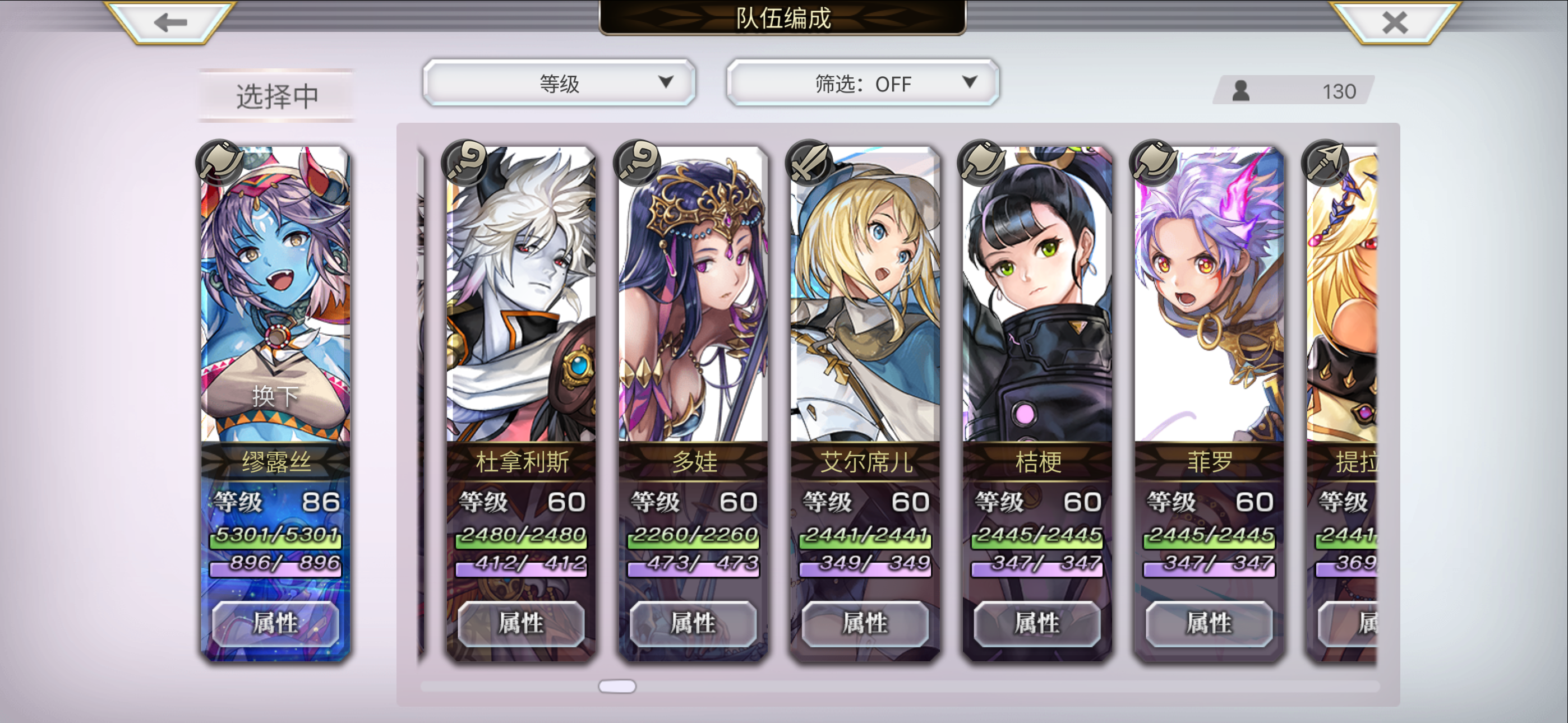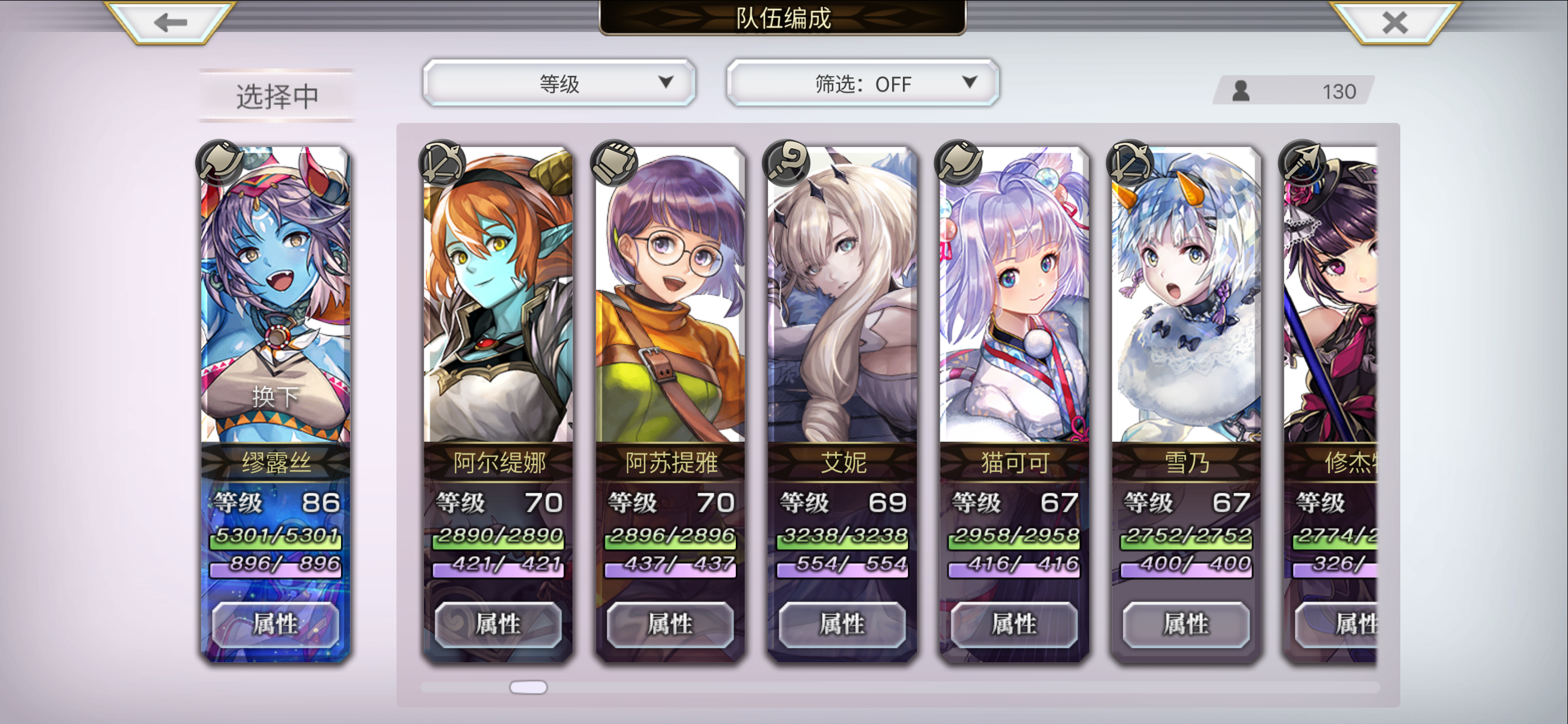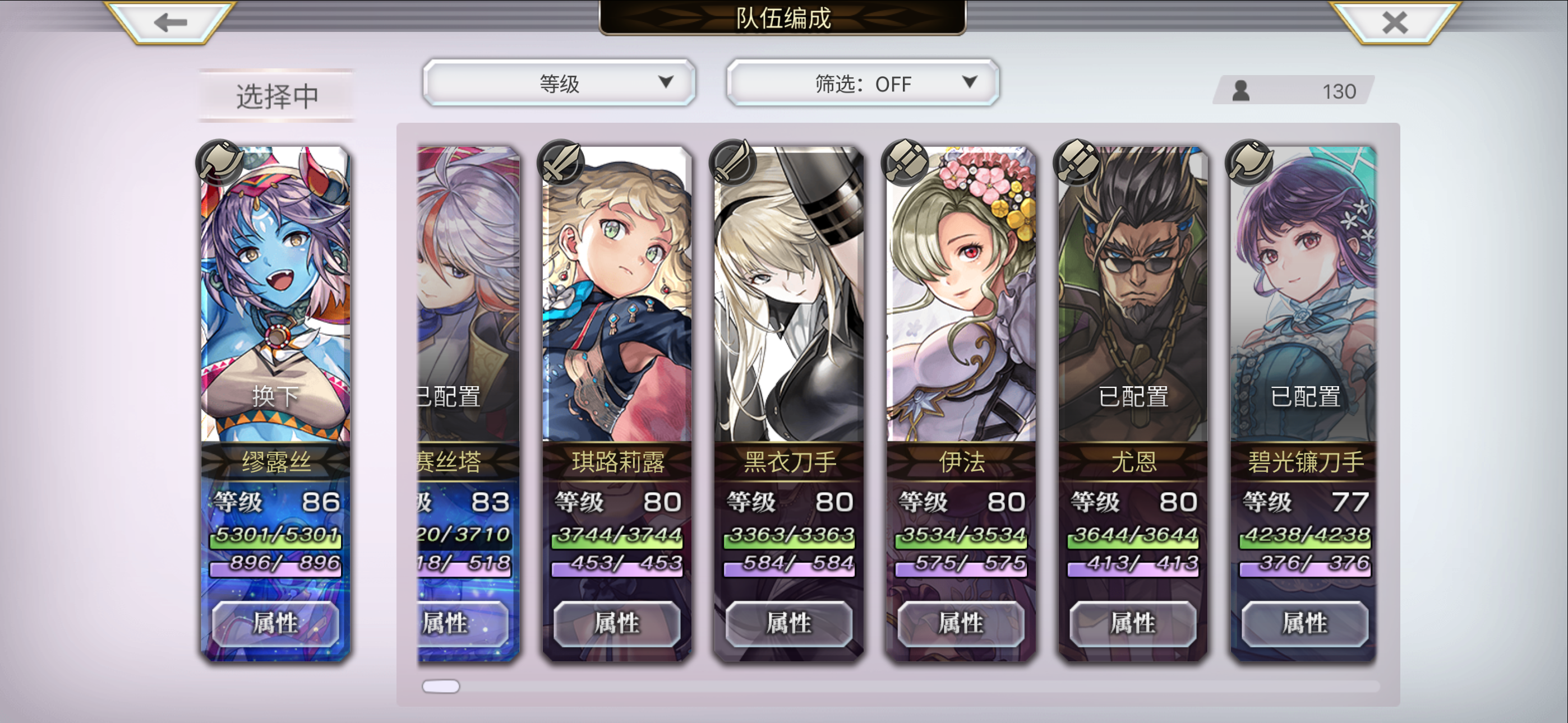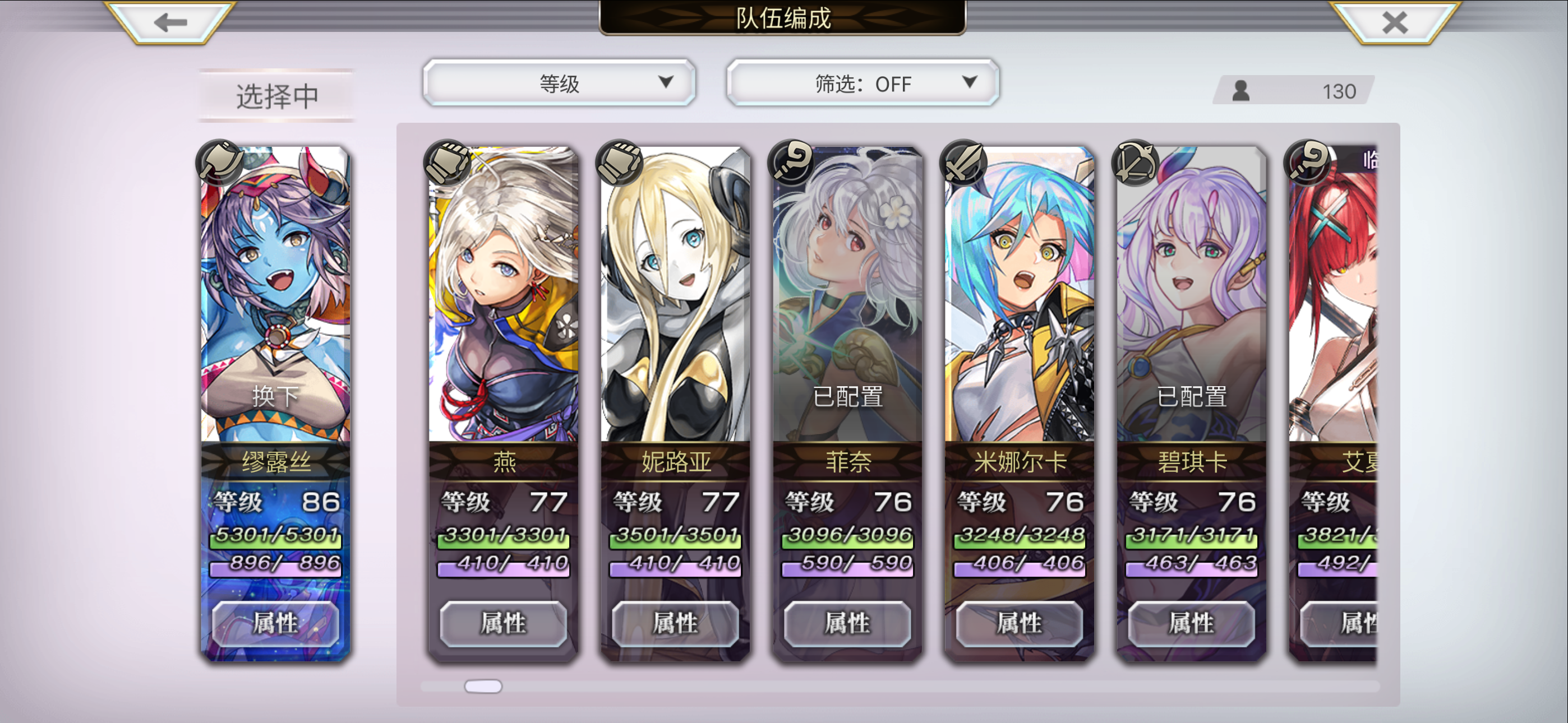目前配队 洛基德(主输出) 安娜贝尔 玛丽埃尔 仙华 草人 多娃es 琪路莉露as 奈歧 克罗德 伊斯卡 修杰特 米悠 碧琪卡ns 玛丽埃尔 麦提 由奈 拉蒂卡 安娜贝尔(觉醒) 紫苑 伊斯卡 月华 奈歧 桔梗 克罗德 洛基德(觉醒) 尤恩 梅丽娜 琪路莉露 维克多 雪乃 猫可可 仙华 莉娜里亚 巴雷斯(觉醒) 妮娜 琪德4.5星 艾妮 伊津奈 梅丽莎 红票刷艾妮五星书,绿票刷现东下