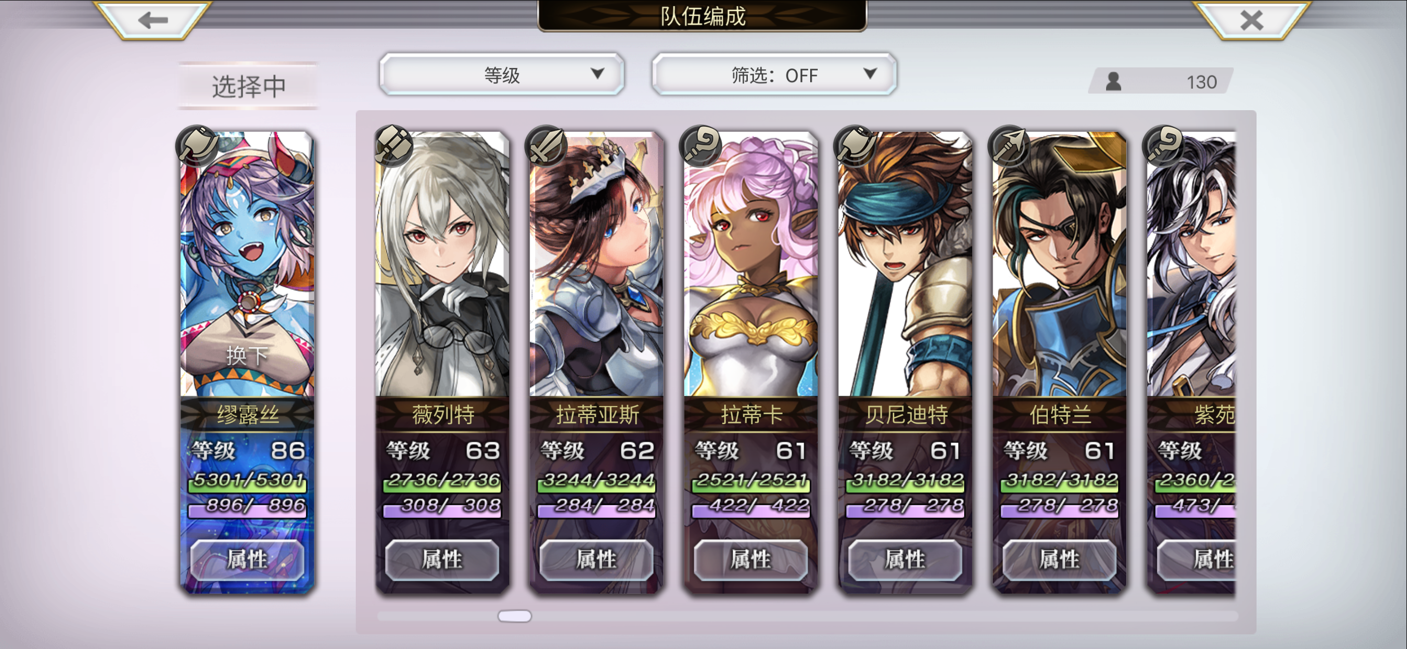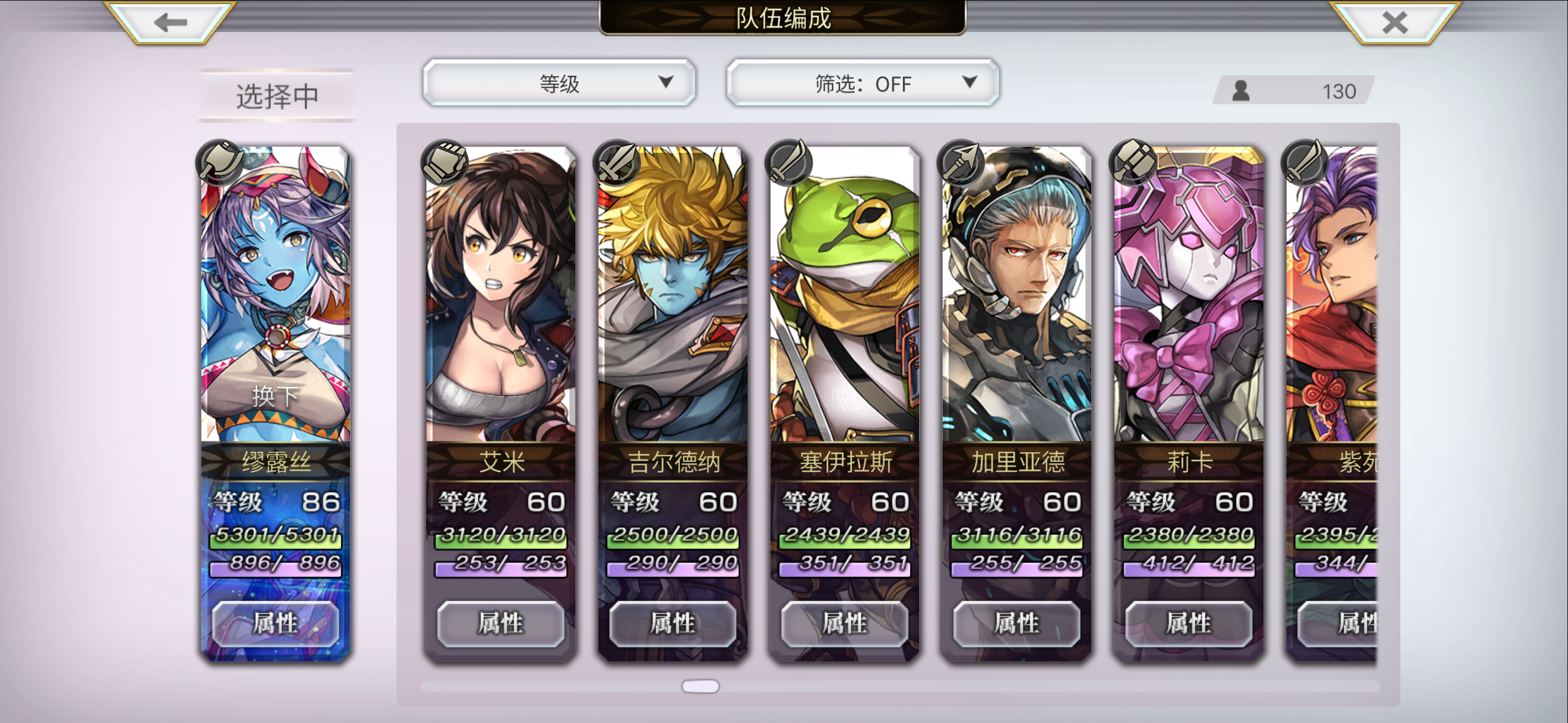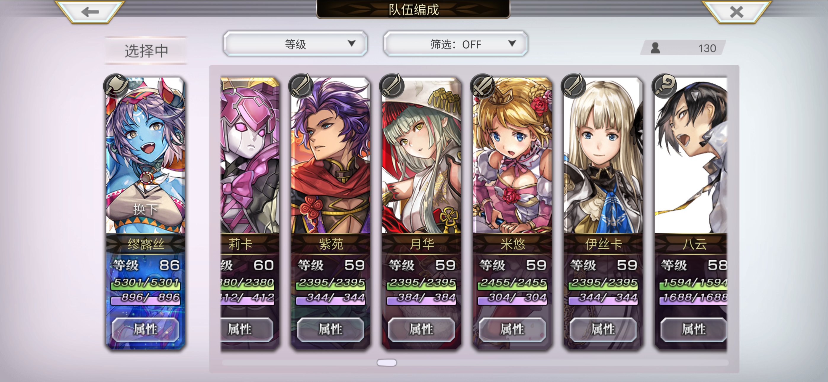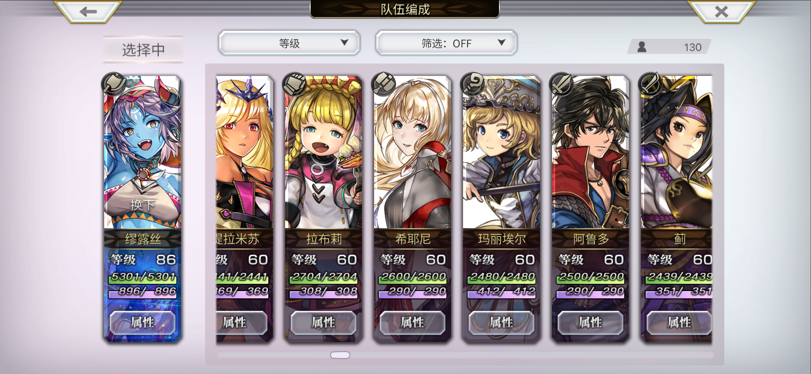 目前配队 洛基德(主输出) 安娜贝尔 玛丽埃尔 仙华 草人 多娃es 琪路莉露as 奈歧 克罗德 伊斯卡 修杰特 米悠 碧琪卡ns 玛丽埃尔 麦提 由奈 拉蒂卡 安娜贝尔(觉醒) 紫苑 伊斯卡 月华 奈歧 桔梗 克罗德 洛基德(觉醒) 尤恩 梅丽娜 琪路莉露 维克多 雪乃 猫可可 仙华 莉娜里亚 巴雷斯(觉醒) 妮娜 琪德4.5星 艾妮 伊津奈 梅丽莎 红票刷艾妮五星书,绿票刷现东下