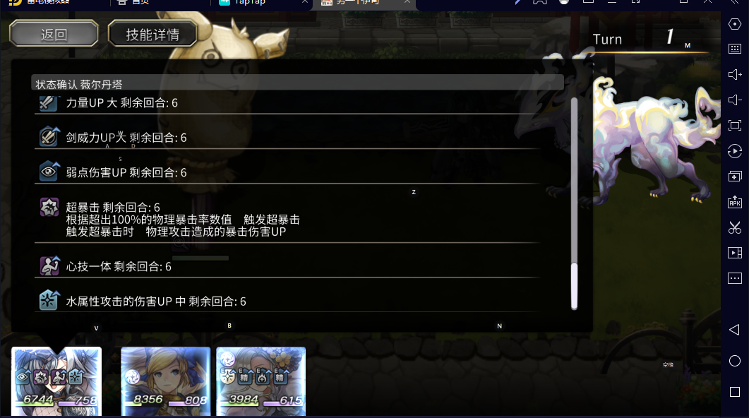 醒的早,正好试一下asac中二和会长之间的差距。先来看目前风队三人的Buff,ac燕,as狼,es时雨①风耐100%②属攻100%③武器伤100%④全队心机一体(as狼和es时雨自理)⑤as狼的全队70%力智速⑥es时雨的全队以下克上⑦除了时雨都有的弱点增伤ac燕提供的珠子这么来看,缺的Buff就是剩下的30%力智速,爆伤,砍物耐这三个比较常见的Buff1.看这两位角色的技能