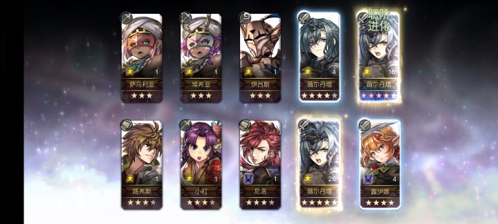 嘿嘿,高兴了~~攒了6000多石头,结果20抽就抽到了,难道是新号的关系?上次抽复刻的安娜贝尔也是20抽就抽到了,我还在想上次运气这么好,这次会不会就非了,真没想到啊!Okok,现在推主线强度应该不用愁了还有一个问题,按P4配队推主线ok吗?