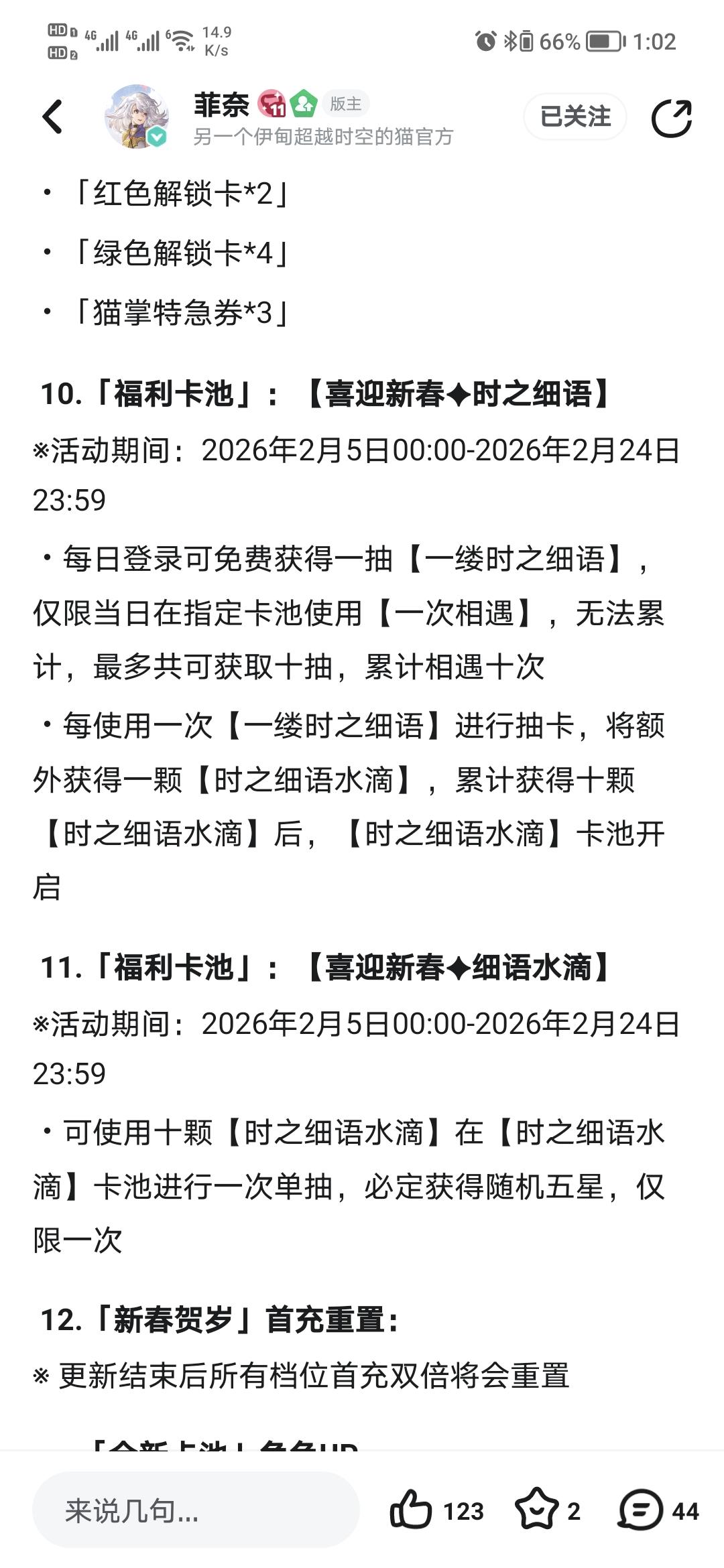 鉴于上一个合集帖子已经挺久没更新了,我这里开个新帖作为索引,点链接即可跳转对应内容。未实装的内容会在链接后附注【未实装】,没有附注的就是已经实装的内容。❤近期版本内容:26-02-04 实装:25-12-17 魔兽之章实装:25-07-16 实装============================❤游戏机制与新手入门❤主线剧情第1部:超越时空的猫第1.5部:宿星之王与圣剑的挽