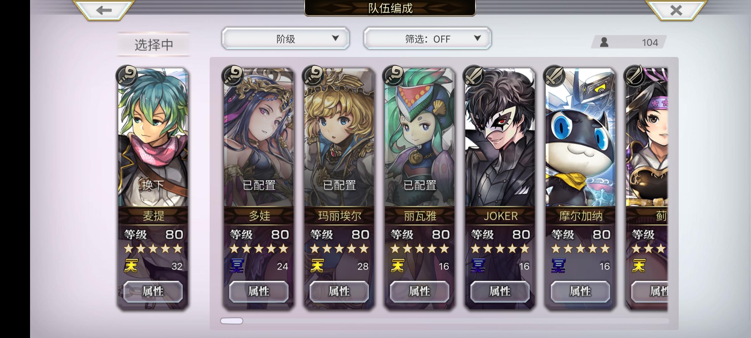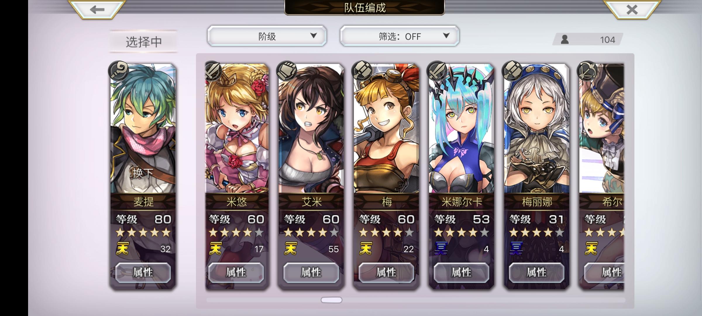 刚入坑半个月的萌新来问问猫铃铛自选和配队目前主线3.0前篇刚开了个头,外传和联动都还没怎么碰,今天更新的猫铃铛三档都买了自选先选了狼姐和时雨,第十章新手自选选了7616本体,进过两次白票本最终层拿了两本神圣恩宠改典,图里是现在有的4.5星和5星角色,求问配队和自选该怎么选或者需要先去拿什么配布角