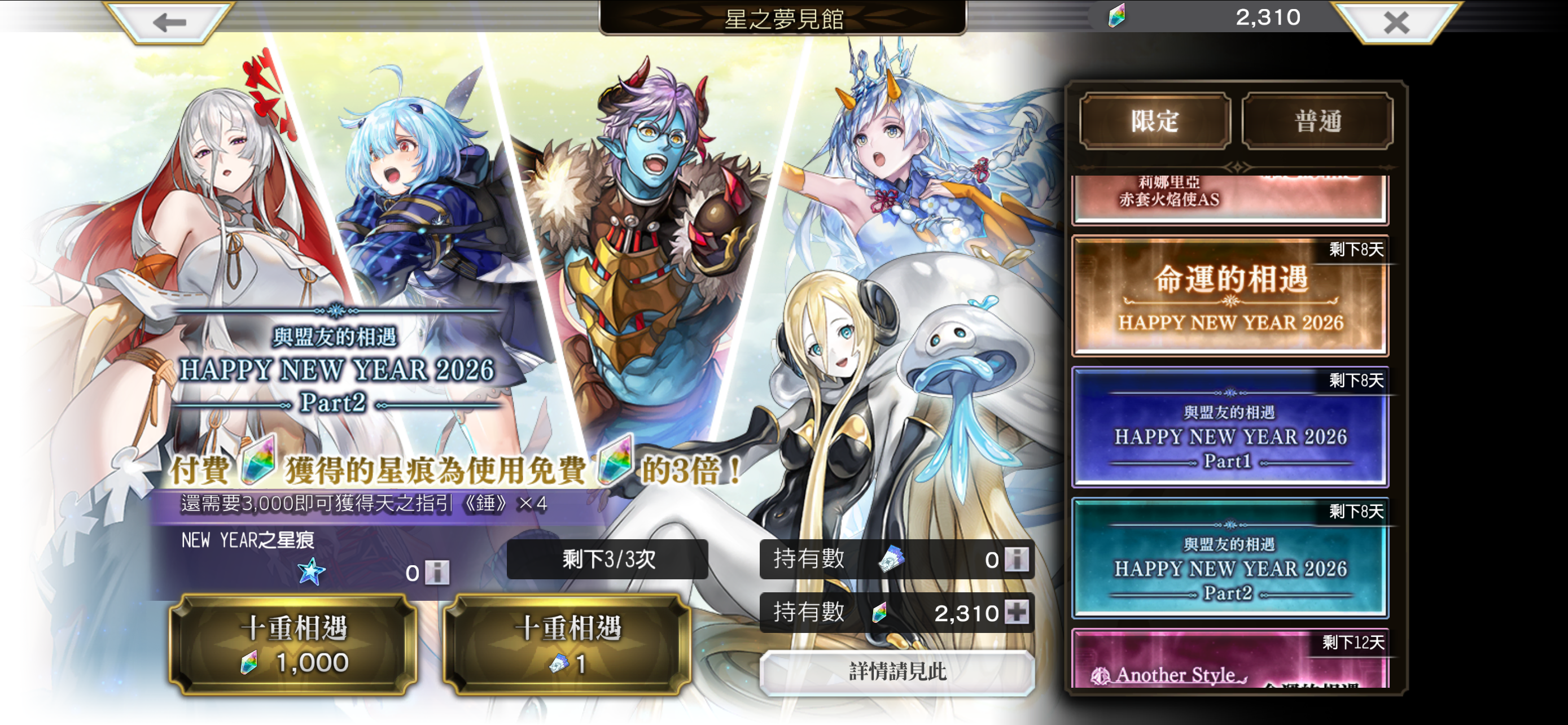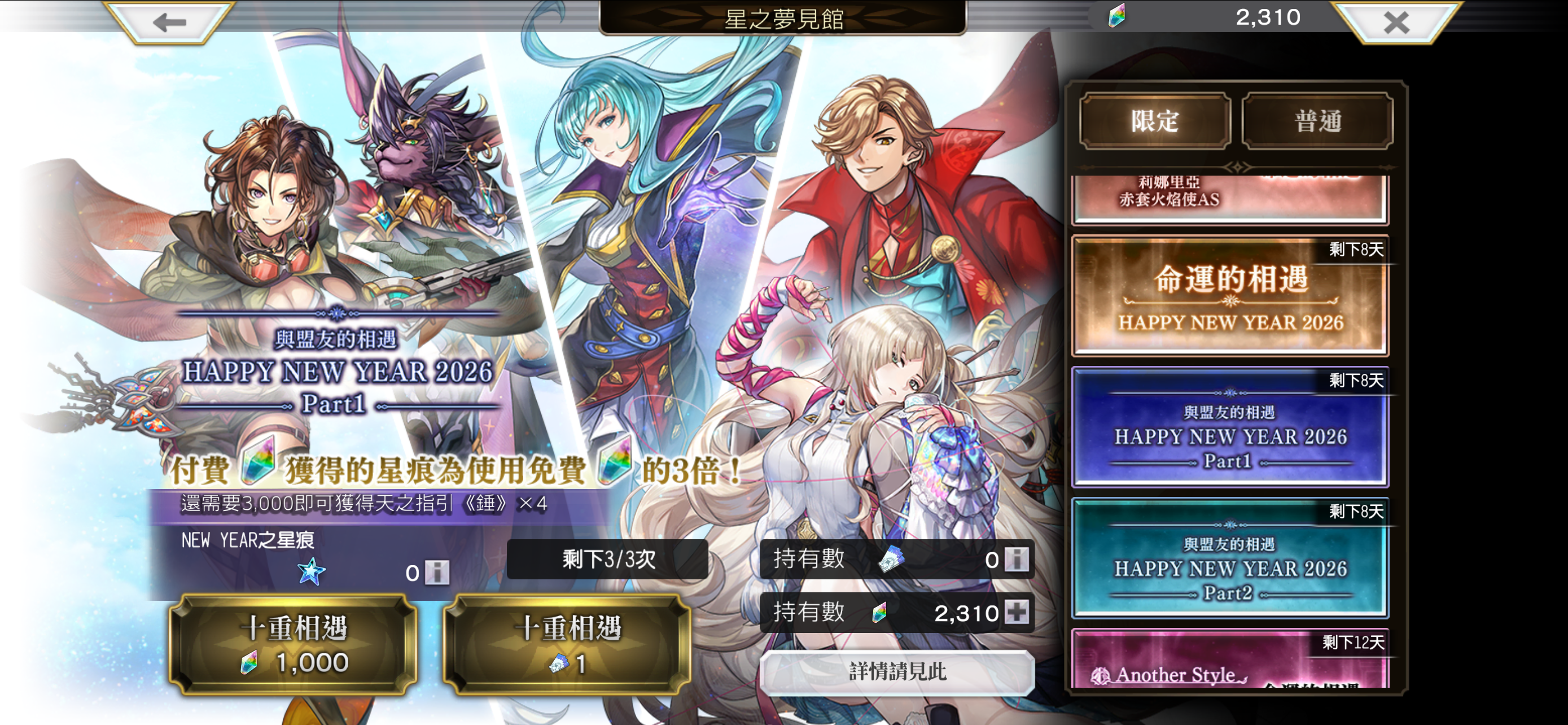 1)ES希斯梅娜2)未来外典回声3)伐龙前日谭+琉结专武+龙仔升54)as龙岛弓5)下次直播为2026年1月20日