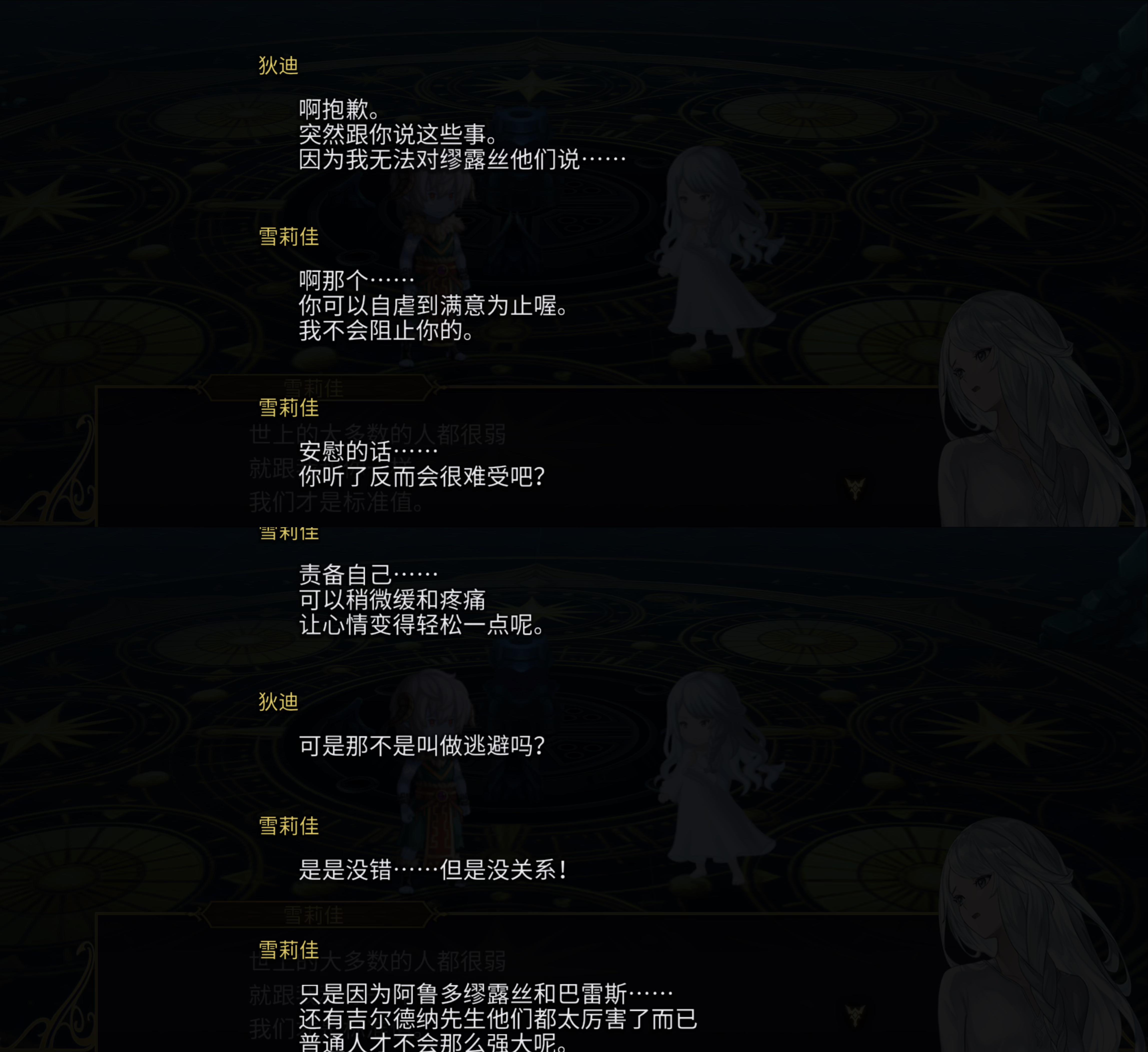 首先这是缪露丝封面的这次外传观后感涉及剧透!!!写在前面:目前我主线仅仅推到了六十多章,很多外传协奏没有看,如果说错还望大家多多包涵欢迎指正!一直以来玩猫游就有截图的习惯,专门建了一个qq相册做赛博读书笔记,这次外传截屏频率可以说很高了。从我分享的配图说起;图一,好看的立绘,幽和雪莉佳小姐姐的出色颜艺(有一