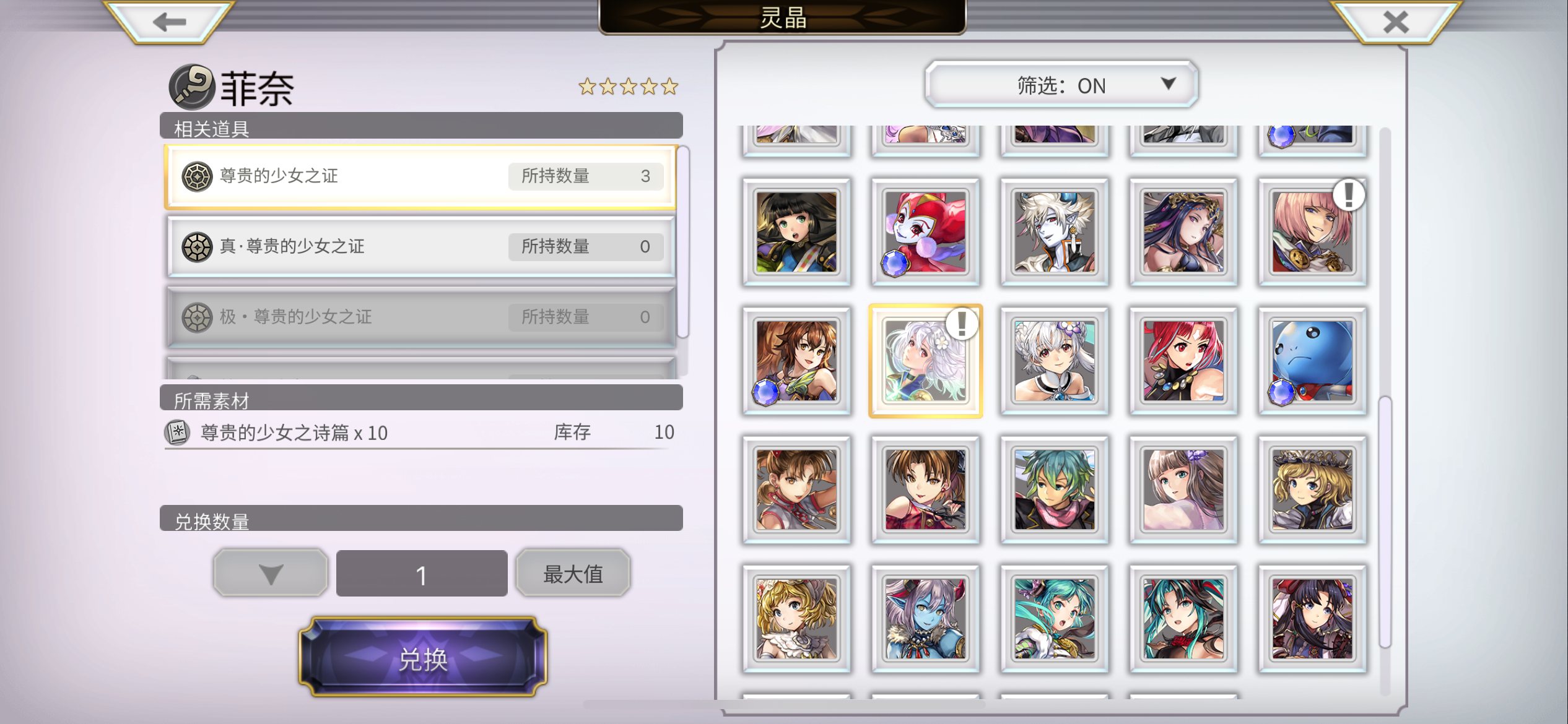 特殊结晶和碎片是合成角色专属灵晶必须的消耗素材,而游戏内获取的方法又比较有限,以下说明一下获取该素材的方法。1.进入冥峡界副本,找第一个图右上的帕诺族交换道具;2.用20个漂流物可以兑换一个尊贵少女的诗篇(ns菲奈专属灵晶);3.打开灵晶页面,点击交换,找到菲奈,10个诗篇可以换一个灵晶;4.点开合成,活性化菲奈的灵晶(需要20个特殊碎片);5.点开分解,把刚刚活性化的灵晶分解;这样我