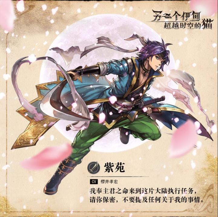 时间旅行者们好呀,又到了菲奈和大家见面的时间了,最近到了天气转暖樱花盛开的季节,在《另一个伊甸:超越时空的猫》这款游戏中,有一个和樱花有关的国家,名字叫东国,意思是位于世界东面的国家,之前听监事先生的描述,感觉和这里的日本很像呢。在这短短的樱花季期间,菲奈在星之梦见馆开始整理有关东国角色的资料,第一个翻到的便是他。姓名:紫苑CV:樱井孝宏携带密令,从东方国度远道而来的武士。年纪轻轻就练成普