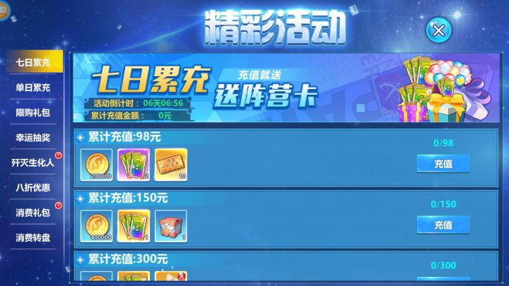 【七日累充】活动时间:开服前7天