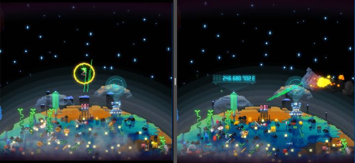 能轻松享受各种特殊武器的游戏】蓄力 贯穿 反射 追踪】分裂不太适合后期使用:—— 一个星球呆太久】—— 只有一个陨石时根本打不动】(最后干脆直接套娃(截图中的需要合成(分屏后的截图 剪了一半画质更低(增加了边缘的视界范围