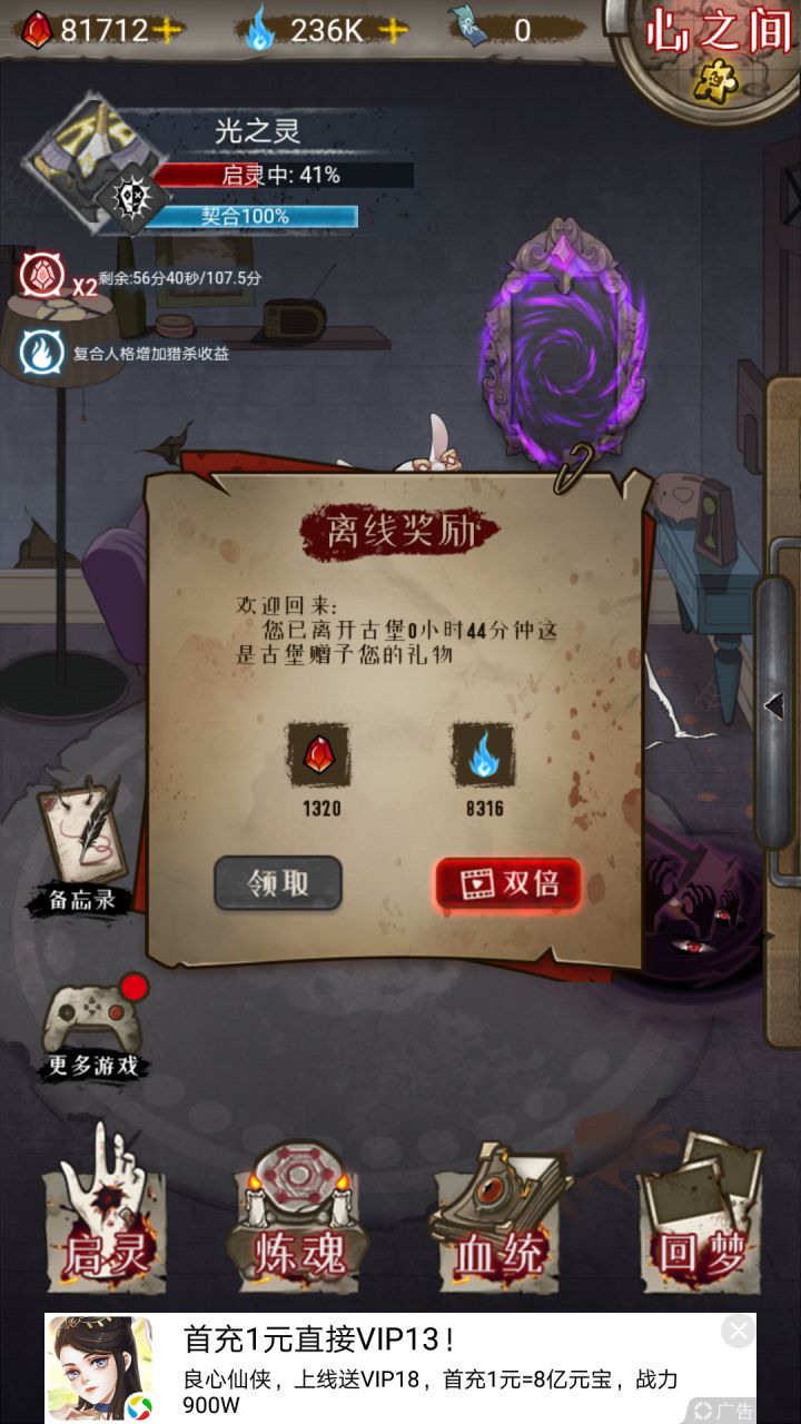 如题,看到有人问BUFF离线收益问题,大家都说离线无加成,然而。。。我把之前的提问贴改了一下,测试在后面————原提问贴————1离线灵魂和血统有关系吗,比如血统高,离线收益的灵魂就高?2游戏开了BUFF双倍以后,离线会延续这个双倍吗?刚刚开了80多分钟的BUFF,然后下线,如果我80分钟后上线,是不是会得到“本来的血钻*BUFF的二倍*看广告的2倍”=“本来的血钻*4”(还是我想多了ORZ