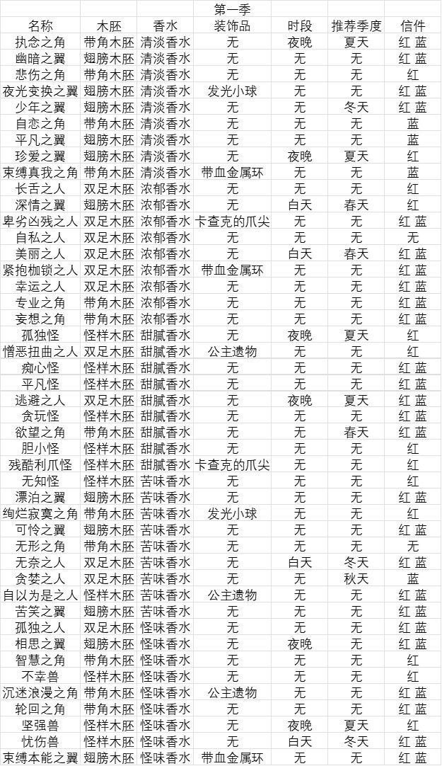 本帖会详细介绍本游戏的各种机制,使玩家少走弯路,更高效的完成全收集,(不过 佛系才是本游戏精髓👴🏻)。 第一季所有支线木雕配方都整合在本帖评论区(点击最早回复或只看楼主方便观看), 第二季支线木雕配方在这个帖子里☞ ——————————正文———————— 已知制作木雕时,木胚 香水 装饰品,还有木雕归还时的季节和天气,将会影响各种木雕的获得概率,注意只是概率,不存在百分百的一一对应关系,所以,我