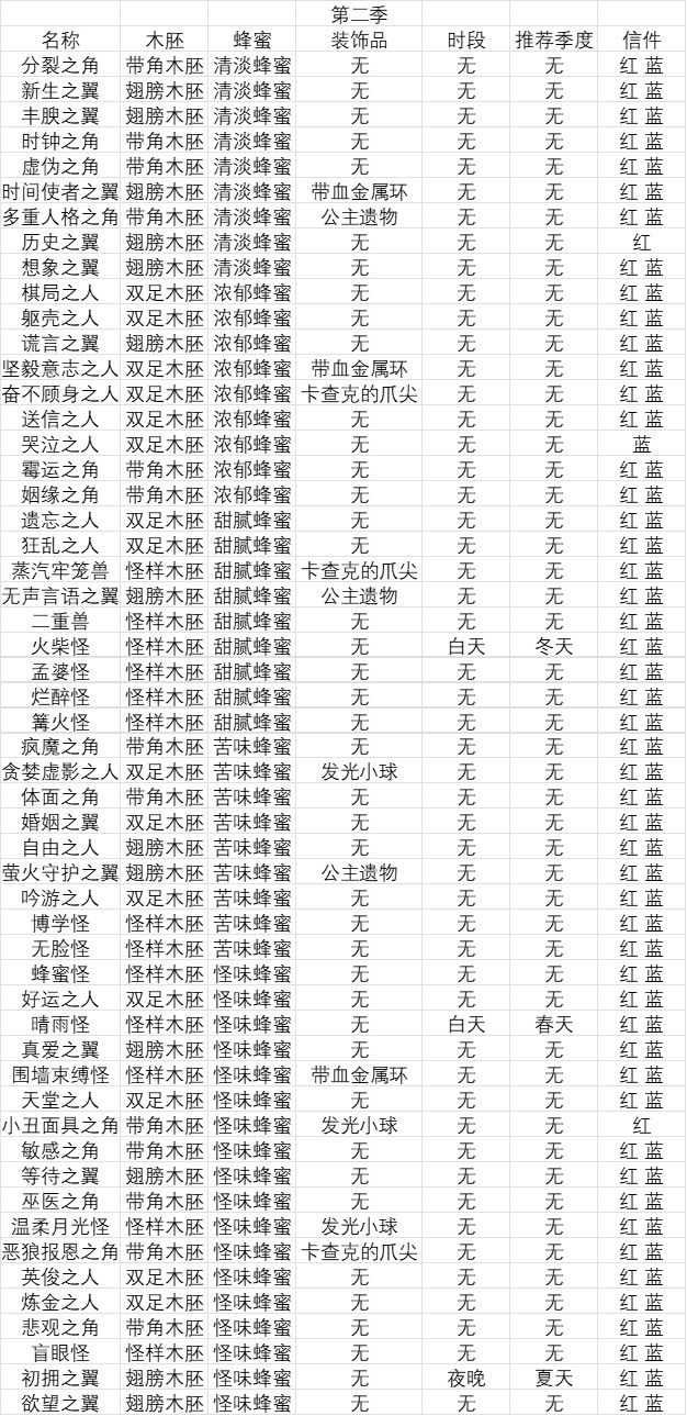 整理了一下steam上的木雕配方(玩过的应该能看懂是什么意思吧…)信件那里红色就是倒茶的回信,蓝色是不倒茶的,有的只有一个或者不管倒不倒茶都没有回信也标出来了(另外也不知道steam上的配方和手机端互不互通,有兴趣可以试试)
