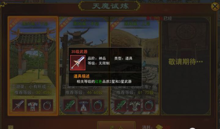《热血江湖手游之独步武林》这款游戏复刻了当年大火的热血江湖这款游戏,游戏上线后也是收到了老玩家的一致好评。1、二转装备获取武器:35级的武器没有星的为邪1正1,一颗星的为邪2正2,两颗星的为邪3正3,三颗星的为邪4正4,三颗星的武器就是60级之前二转的毕业武器,可以好好打造,那三星装备怎么获取呢?3星武器获取渠道如下:神级悬赏任务的宝箱,50级或以上的小怪,45级以上的BOSS。其中神级宝箱出的