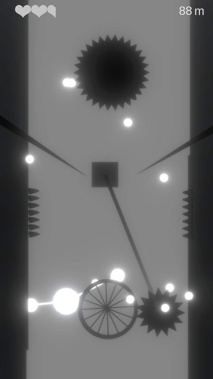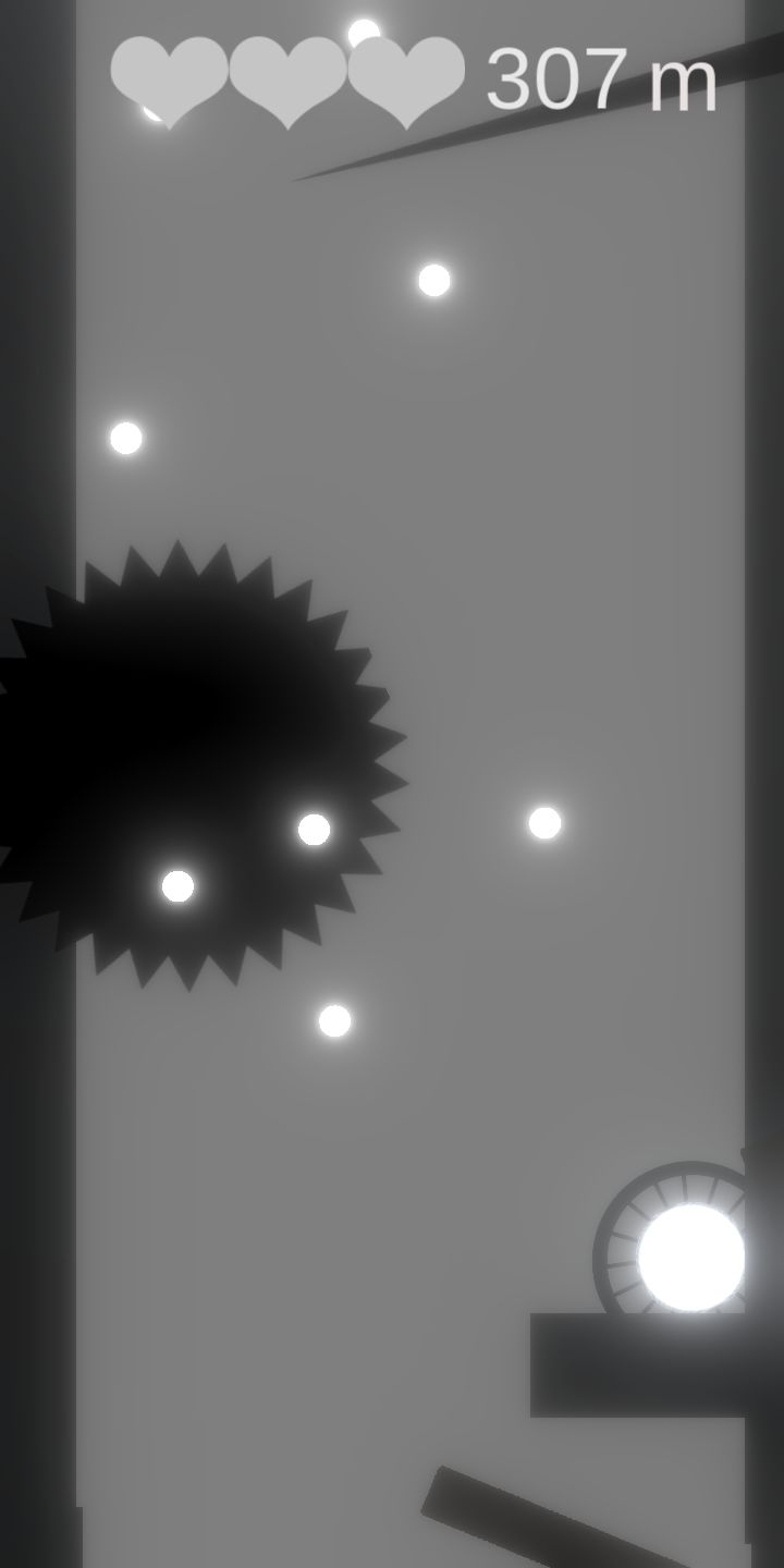 我卡了bug,进入无敌状态想看看后面有啥难度,发现无尽模式就那么十几种障碍物,一直不换,而且到了八百米以后就开始出现色调差异,障碍物在最上面是白色,到了中间才变成黑色,到九百米以后就什么也不显示了,纯粹靠运气蒙。游戏难度前期可以,可熟能生巧以后就没什么新鲜感了,一共就那么十几种障碍物,花样太少,但音效部分还是很好的,建议米数越高音效也会发生变化,不然太单调