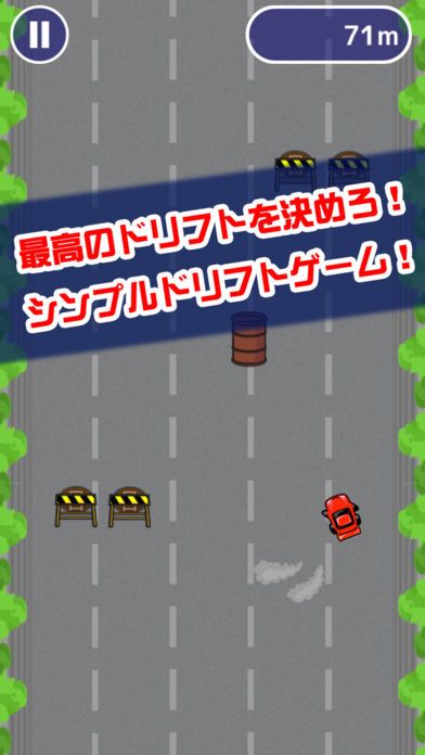 障害物に衝突したり両サイドの壁に衝突するとゲームオーバーです。
