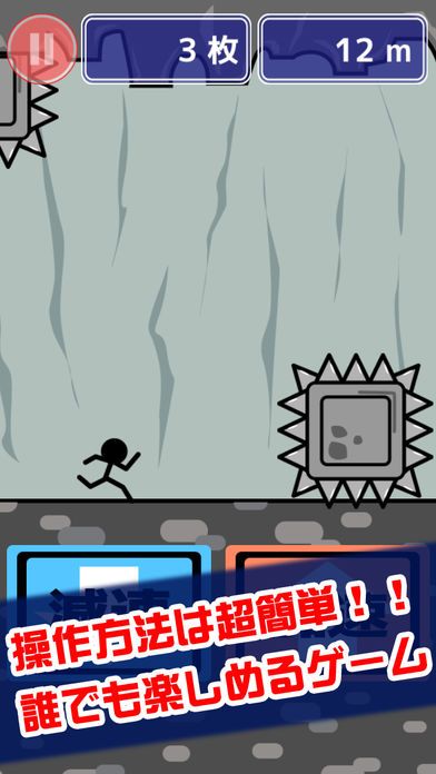 加速ボタン減速ボタンで棒人間を動かします。