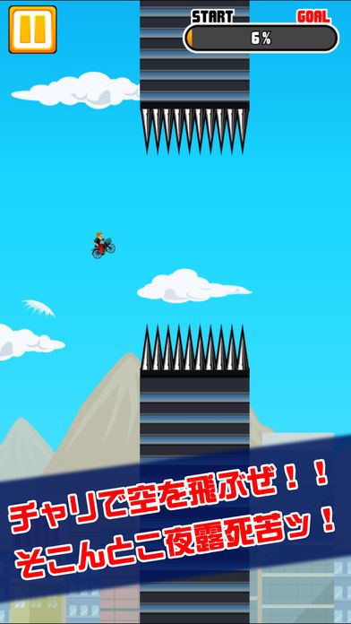 チャリで空中アクション!!ゴールまで辿り着けるか?!