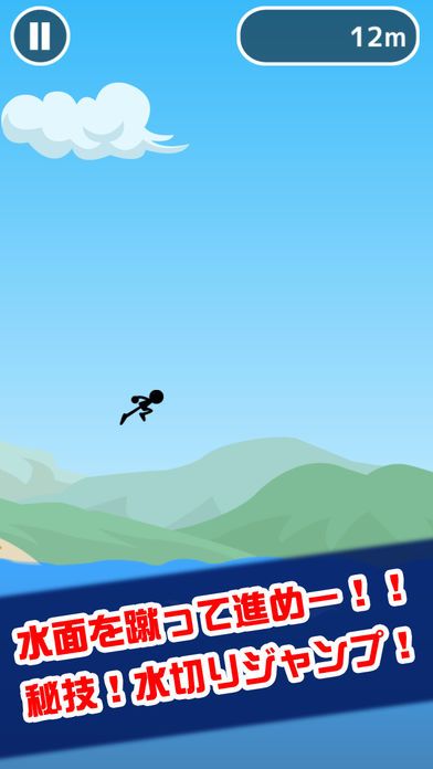 水面に着地するタイミングで画面タップして水切りジャンプします。