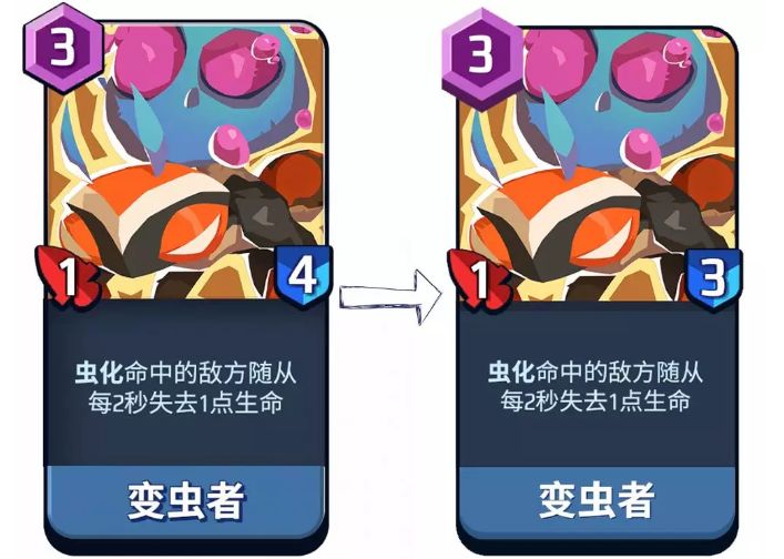 1.【落幕】削弱与意外的加强作为上一次测试的王者阵营,落暮在新的版本中被削弱是预料之中的。落暮有9张卡牌进行了改动,改动的方向似乎都往降低节奏的方法发展。意料之外的是,还是有2张卡牌得到了一定幅度的强化,使得落暮在此次调整之下依然有突围的可能。1)【削弱】变虫者:生命减1评析:在最近的测试中,变虫者一跃成为落暮的白金选手,在各种套牌中均有优秀的表现。其虫化的能力在高生命的支持下,有较高的概率