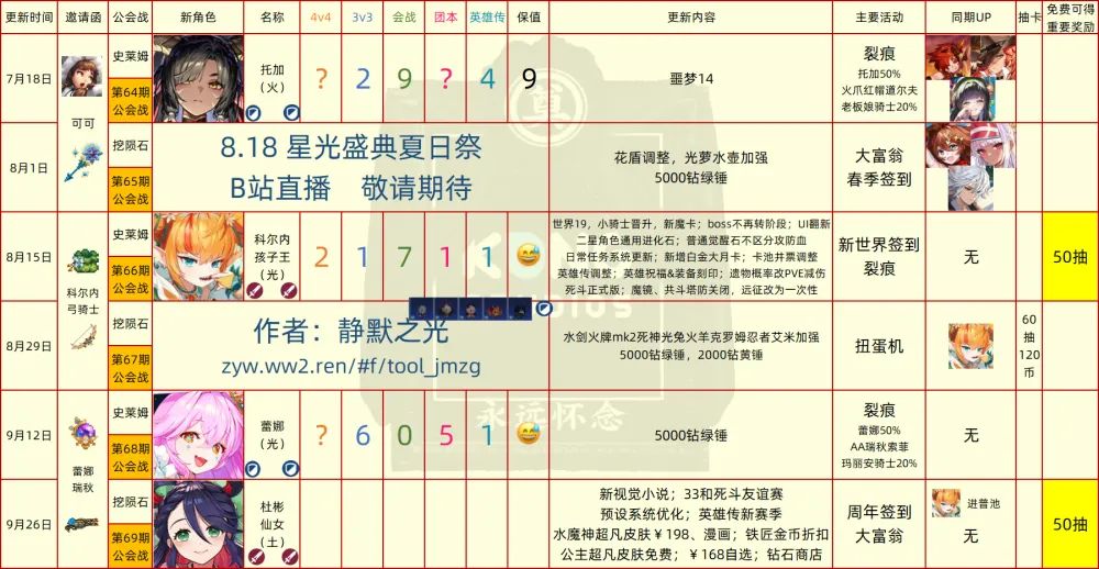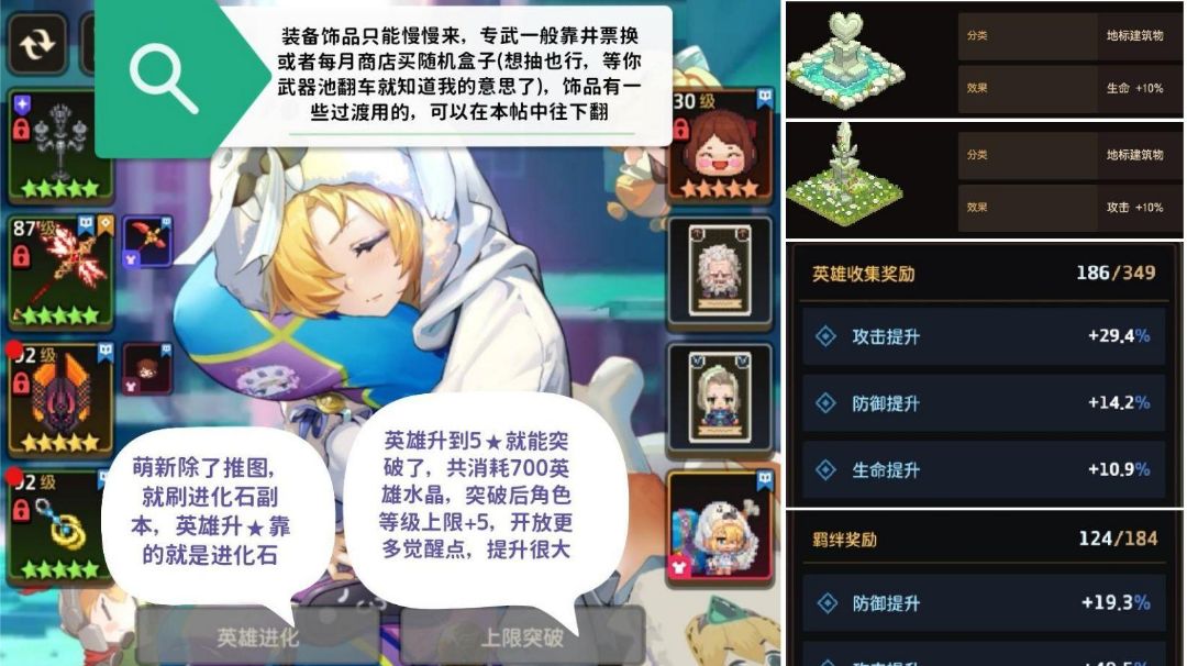 【忙,先更新一版,之后再完善一下】 (也可在游戏内设置-攻略内查看) (不好懂就玩两天先熟悉下) (含80%常规配队,不含33) ————————↓须知↓————————— ★初始号入坑的记得改绑邮箱手机(不改号会异常) ★英雄水晶不要换进化石(稀缺 突破角色要700个) ★通关第九章能免费领未来公主,别换别井 ·新建号会送奶妈美娅(完成新兵训练任务后领取) ·角色只抽一个即可毕业,不要重复抽取!