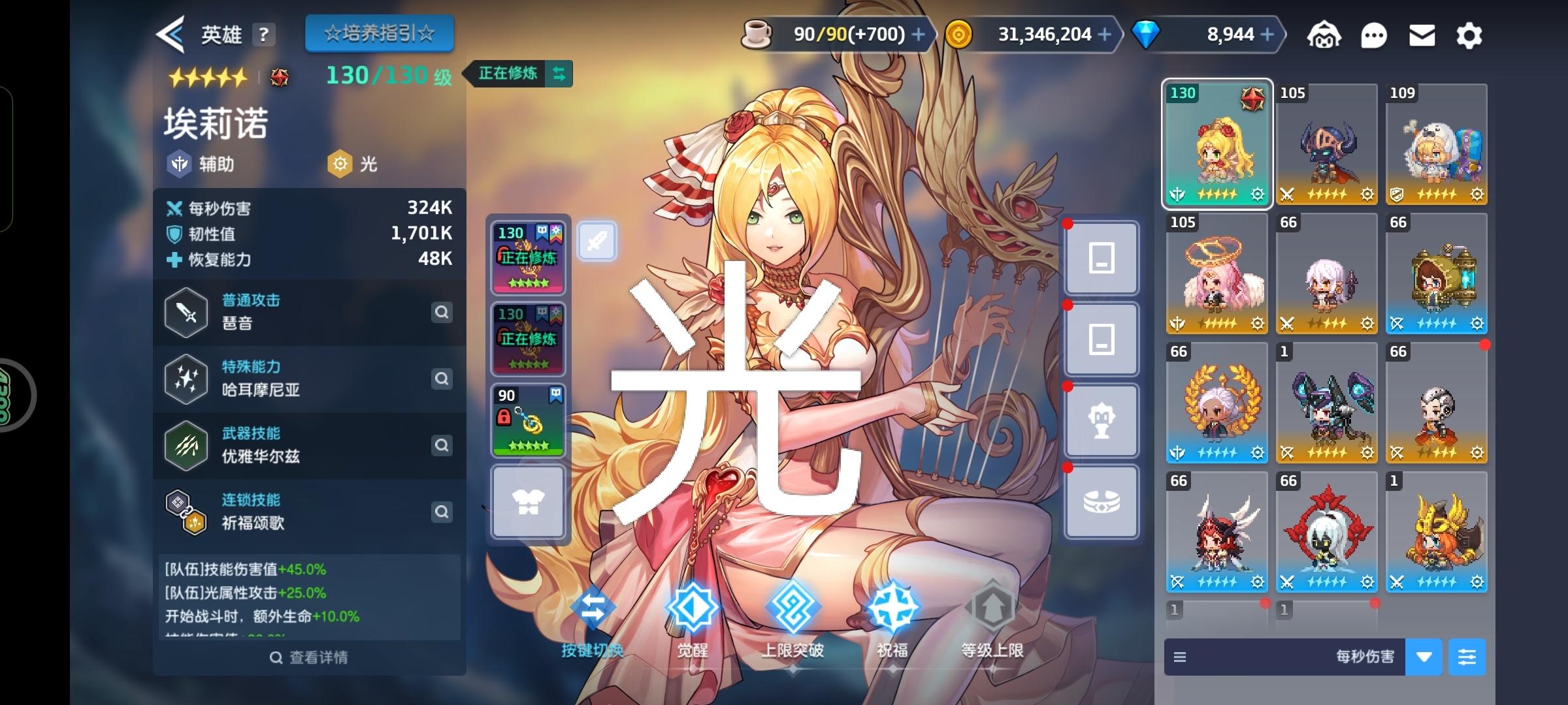7月大更跑路的,还是放不下小公主暗属性基本都有,暗远齐了(开花什么时候轮到岳父姐姐啊),近战有贝斯鸟嘴莉莉丝,吸血鬼右也升阶了水只搞了水魔神跟水龙火基本没有不打算搞其他的看图还有460井票所以:1,抽谁2来个开花顺序土遁吸血鬼现在什么地位了