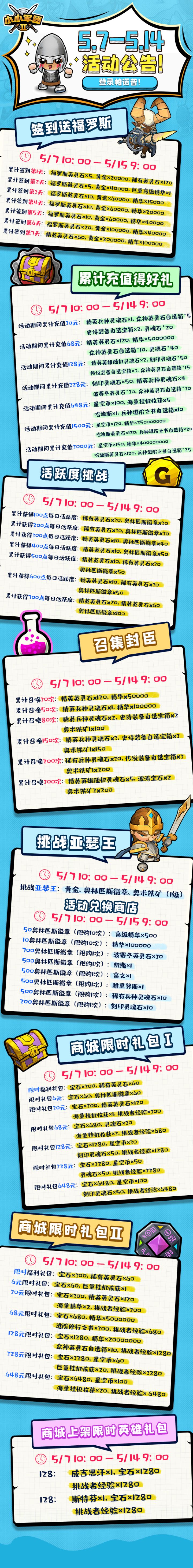 亲爱的领主大人们好——帕诺普大陆将于 5月7日 09:30-11:30 进行例行服务器维护视维护进度顺延时间,请各位领主大人注意游戏进程,避免不必要的损失!新活动将于维护后上线~四团军团长-------------------------------------------------------------以下为具体活动内容