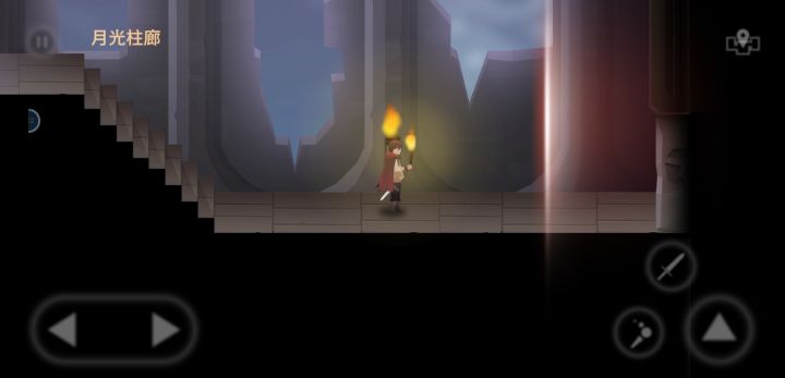 游戏前半段有种探险古墓、讲故事的感觉,但不知道是不是我手机的问题还是bug,场景实在太黑了,只有角色和手上的灯光,四周完全是一片黑,还特意把屏幕亮度调高了也还是黑,导致即便我把画壁的灯火点上,也没有照亮的感觉,只能隐约看到部分画面;