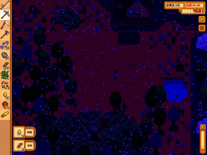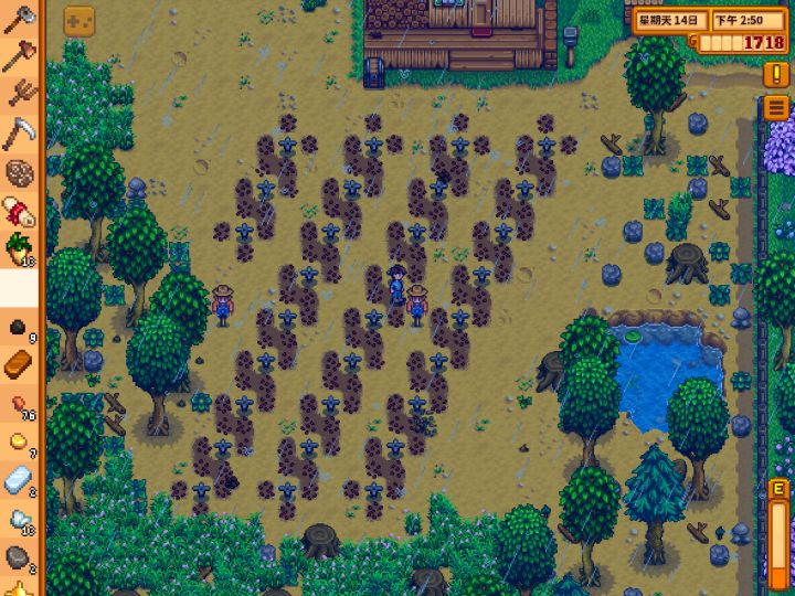 前期一定要多种菜,每天的体力都要花得差不多——就剩一丢丢(我一般都是事后清理农场)。后期的话有时候根本用不完。