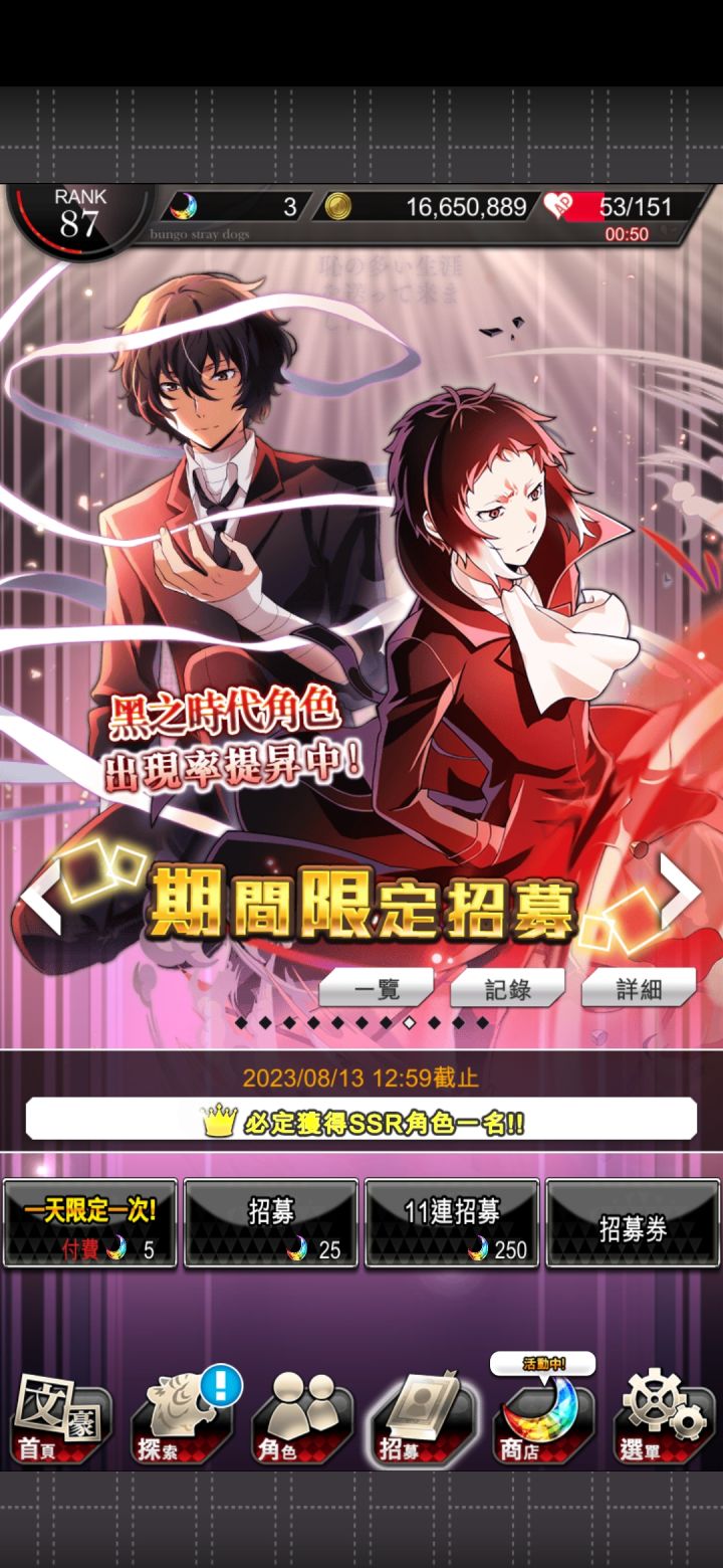十周年图镇楼日服佛系玩家,没啥大活动突发奇想开了个台服号,看看能养成什么样。第一周:抽卡教程:新人十连:阶段池五阶:(抽完的感觉是森医生你好爱我哦,之前国服日服开荒期也是一直抽到森)新手七日签到SSR券单抽+场景卡十连:圣诞镜花!玩了这么久终于抽到你了😭下次来我的日服号好吗😭一周凑了暗队和苍队,这个进度还挺惊喜的,反正比我之前开荒运气好。大概是个长期贴,但是我玩得很佛,过了前期