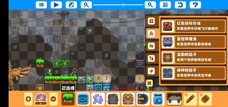 在《幻境双生》这款像素关卡解谜游戏当中,熊猫头少女、机械城市和表里世界这些独特的设定在游戏发布当时便吸引了不少玩家的关注。 而随着时间慢慢的推移,你逐渐玩腻了官方布置的传统关卡,觉得没有趣味性?或者突然间脑洞大爆发,脑海里浮现了各式各样古灵精怪的玩法? 这些都可以在《幻境双生》的地图编辑器模式下完成。化身成为游戏关卡设计师,将自己丰富的想法展现在大家的面前。 游戏的地图编辑器功能齐全,素材库几乎将