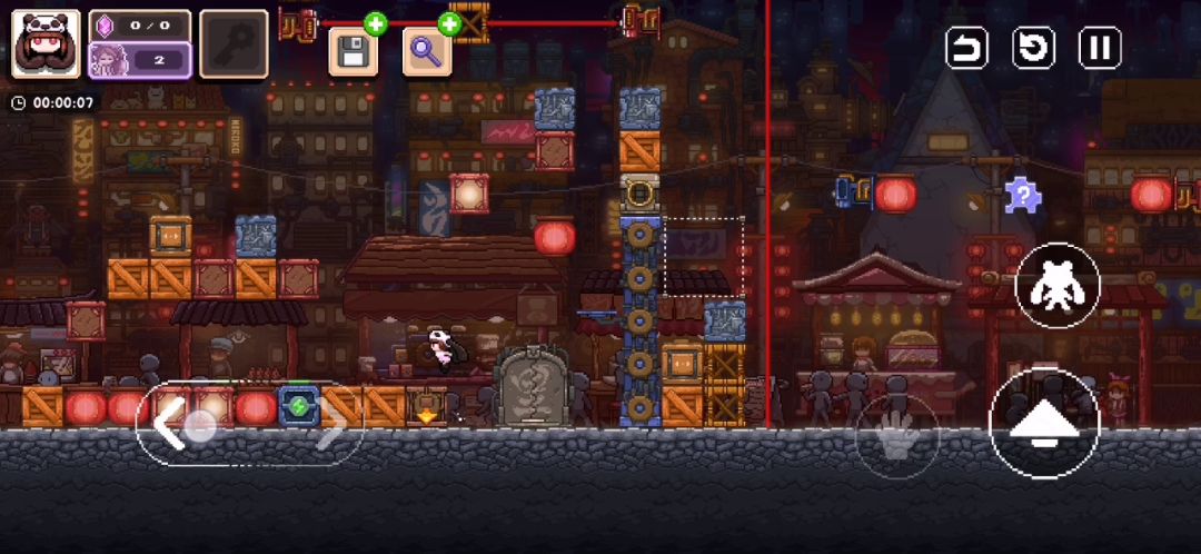 首页这两特性关,一关接近两千次游玩,一关700+游玩次数,却只有群里的大佬能玩出来,作者我看不下去了,出了个教程关,结果又做复杂了。。。 现在解释一下首页两关和视频里那关所用特性:按钮控制的飞行器在执行撤回操作时能会刷新,而在飞行器消失时正好在飞行器上方可以跳的更高(4格)利用这两点就能达到视频里的效果 此外视频里还出现了在里世界移动吐泡泡状态下的泡泡机上的箱子这种操作,这个操作要掌握时机,一般要