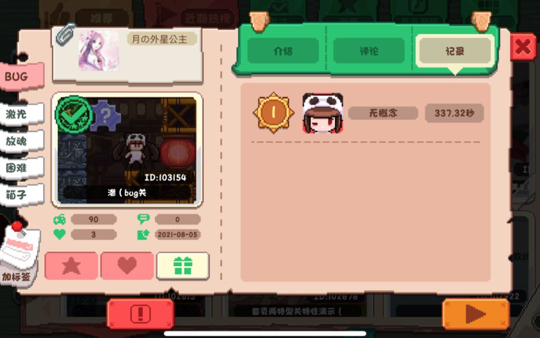 完整版完整剧透:慎入!!! 一个bug关,想不到说什么好,总之看就行了。一堆飞行器操作bug,如果我不发视频又没人问作者,那我3年后再来看看是什么情况好了(意思是在不剧透的情况下估摸够摸索3年时间甚至更长)~~~