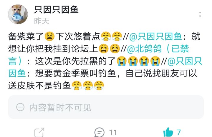 每天看朋友和朋友打架真挺难受的,今天玩的好好的明天就撕破脸……不知道为什么会这样,只希望大家能更乐于找朋友一起玩并和平的相处,而不是论坛里挑衅、挂人,日复一日的找什么乐子,找人骂…有意见就提,也别老是上去就开骂,这和布鲁瓷也没啥区别了……