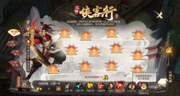 江湖侠客行,抓捕大盗领取悬赏奖励,还有江湖珍材等你兑换!