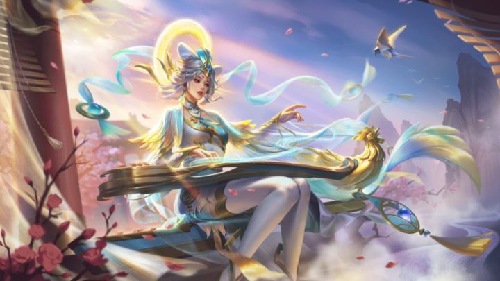 据说最近在梦三大陆时常会出现这样一个身影她总在黎明升起时指尖起舞,琴音破晓为大家驱散黑暗,带来光明!“心善人美”梦*蔡文姬*闻鸡破晓登场换装爆料梦*蔡文姬—闻鸡破晓金羽霓裳梦闻鸡,琴鸣春风伴我意设计详情梦*蔡文姬的该换装主要以圣女形象为主,作为梦三大陆的守护者,整体的主题是圣洁庄重。圣女降临,也宣告着黎明带着希望降临!换装模型展示技能展示一技能:锁心局设下锁心局,造成伤