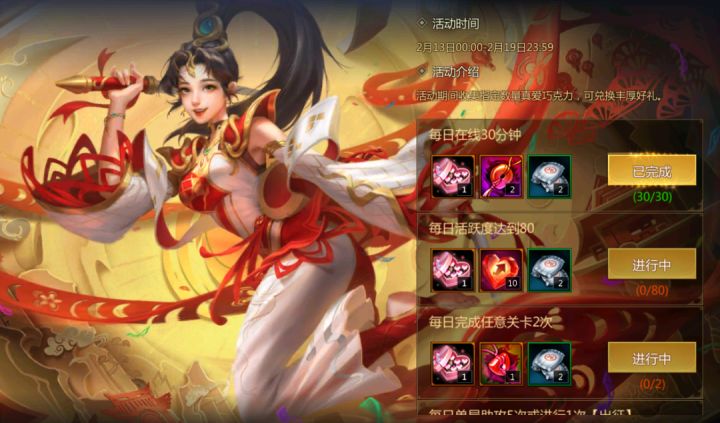 情人节将至有多少仙术师已经准备好礼物约会了呢?!梦梦准备前往梦三大陆看看能不能约到貂蝉姐姐约会 (✿◡‿◡)想邀请貂蝉姐姐,当然不能少了巧克力!快来情人节活动收集传说中的“真爱巧克力”吧话不多说,新一期活动预告速看!!(具体活动详情以游戏内实际情况为准)活动:心动告白1、活动时间:2月13日00:00 ~ 2月19日23:592、活动内容:活动期间,完成各种登录、活跃、发对