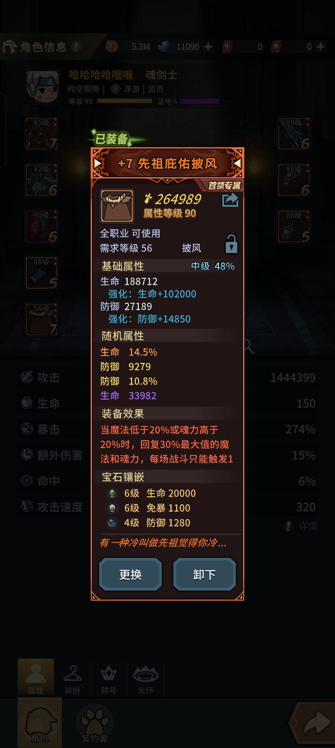 冥狱头,40攻击,终于改版,不会暴毙了,然后冥狱上衣,能和头连锁,在掉血的同时触发衣服的攻速增加效果,鞋子的技能伤害增加,触发几率挺高的,这里我是用旋刃斩加重斩触发鞋子特效,头鞋一块触发,打爆发伤害。 三件冥狱还有15暴击,15普攻,加上披风60普攻伤害,走普攻流伤害也是可以的,而且就算不升级三件基础也是很不错,15暴击率也很关键,护手选的崇高护手,20稳定增伤,右边是冰封2,武器刀,刀打爆发伤害