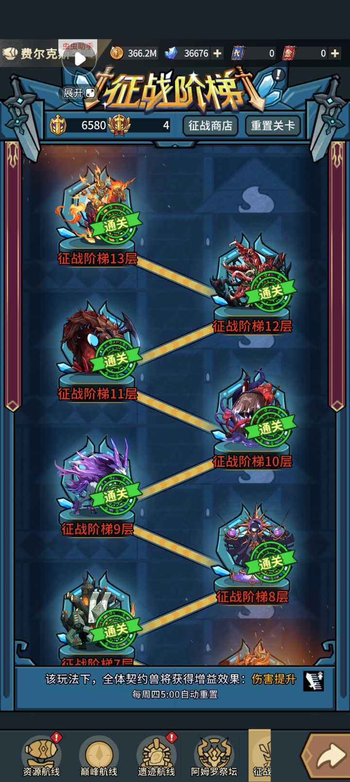 发现十三层不用一个一个宠物耗了,直接带3巨像,靠25秒的减伤百分之50和免疫控制,带龙鲨鱼狐狸可以强杀