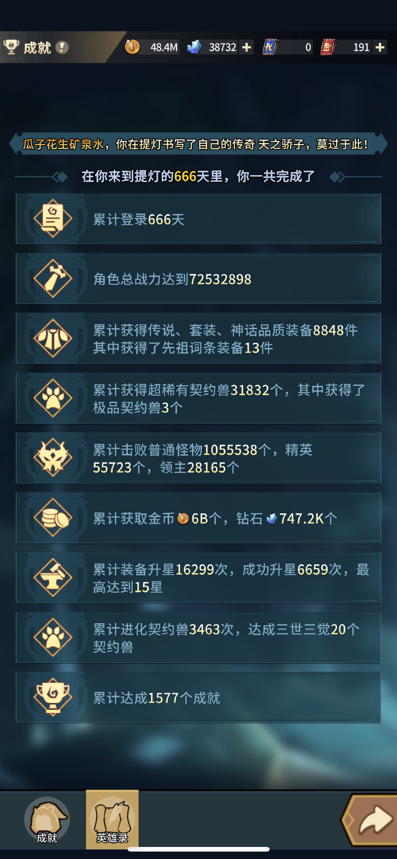 挺喜欢这游戏的,1个87级小萌新,那个迷宫活动都打不过,就想着有空玩玩就行,今天上线看有弹珠,就抽了2次,第一次给个6代钻石,想着运气不错在点一下,结果中了大奖