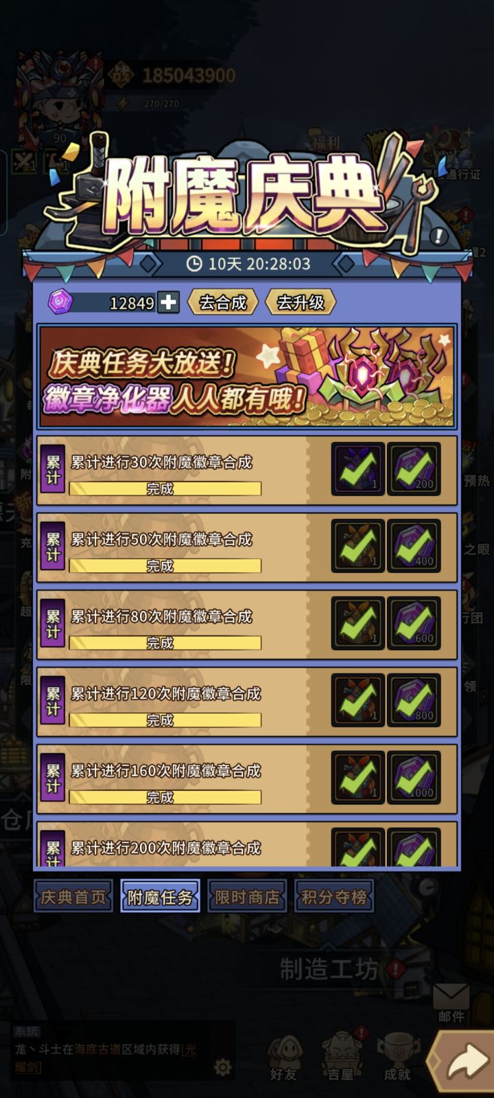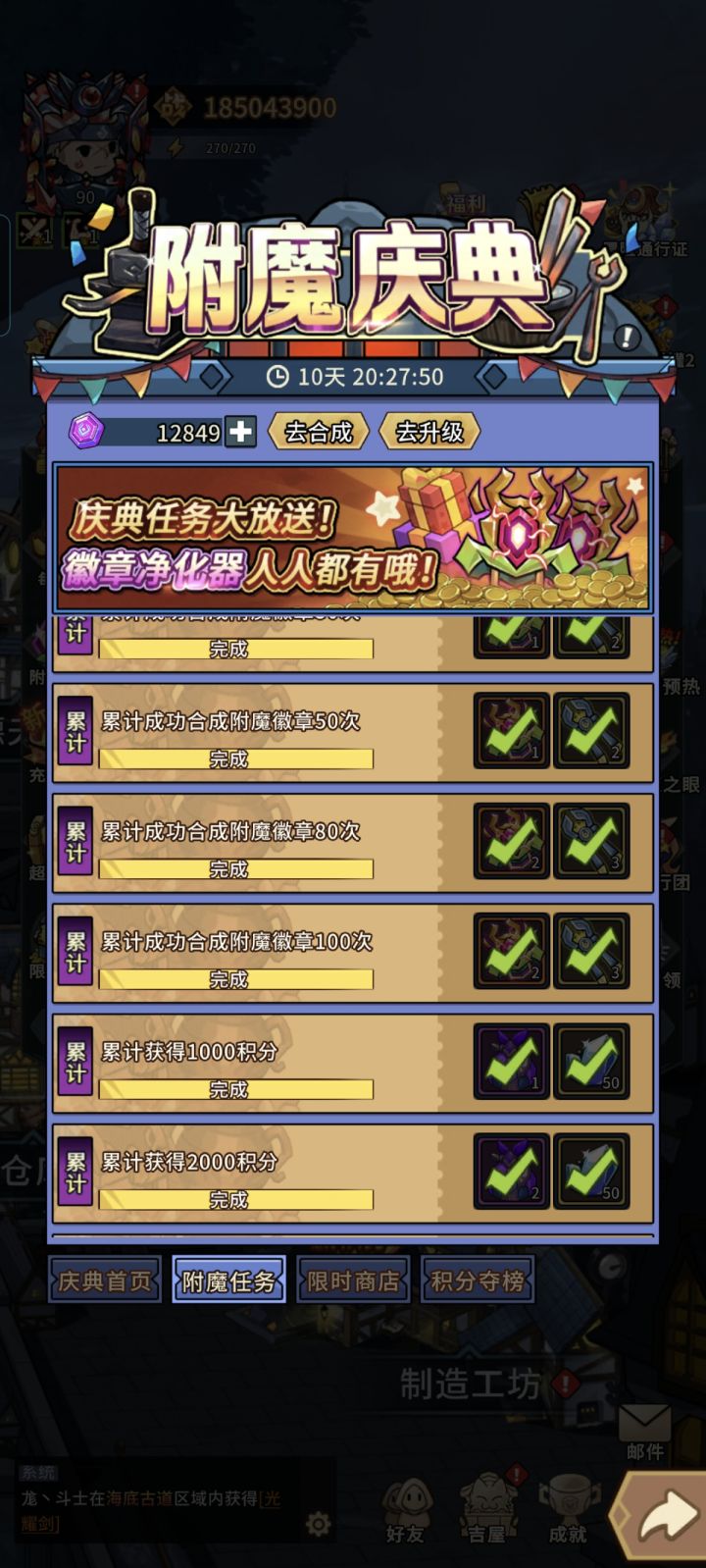 附魔任务完成还没领,一进界面,都领取了?背包一个没有?刚更新完就出bug